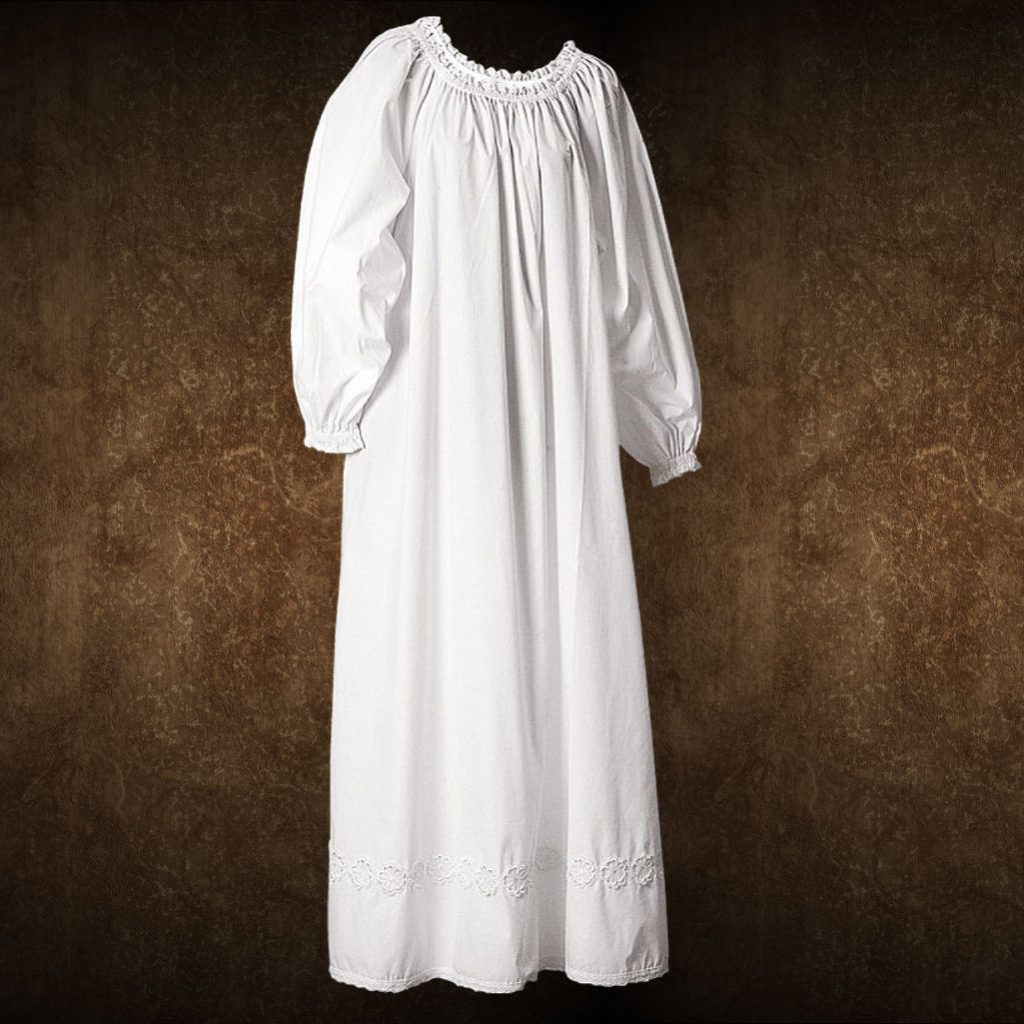 Keskiajalla naiset käyttivät alushameita lähes poikkeuksetta. Alushame piti päälivaatteet puhtaana pidempään, ja hyvin usein sitä käytettiin myös yöpukuna. Pitsisomisteinen alushame on naisellinen ja kevyt vaate, joka sopii käytettäväksi monen päälihameen ja -vaatteen alla. Helmaa koristaa pitsinen kukkakuvio ja myös hihansuut sekä kaulus on koristeltu pitsillä. Hihansuissa ja kauluksessa on kuminauhat, joten ne on helppo asetella itselle sopivaksi. Kaulusta voi käyttää niin kiinninnäisenä kuin olkapäille venytettynäkin.
