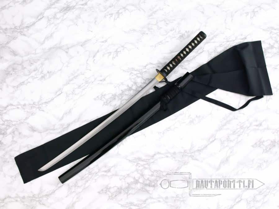 Katanan mukana tulee perinteinen musta kankainen suojapussi, joka suojaa miekkaasi niin varastossa kuin matkoillakin.