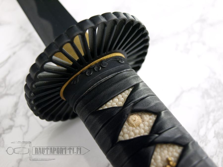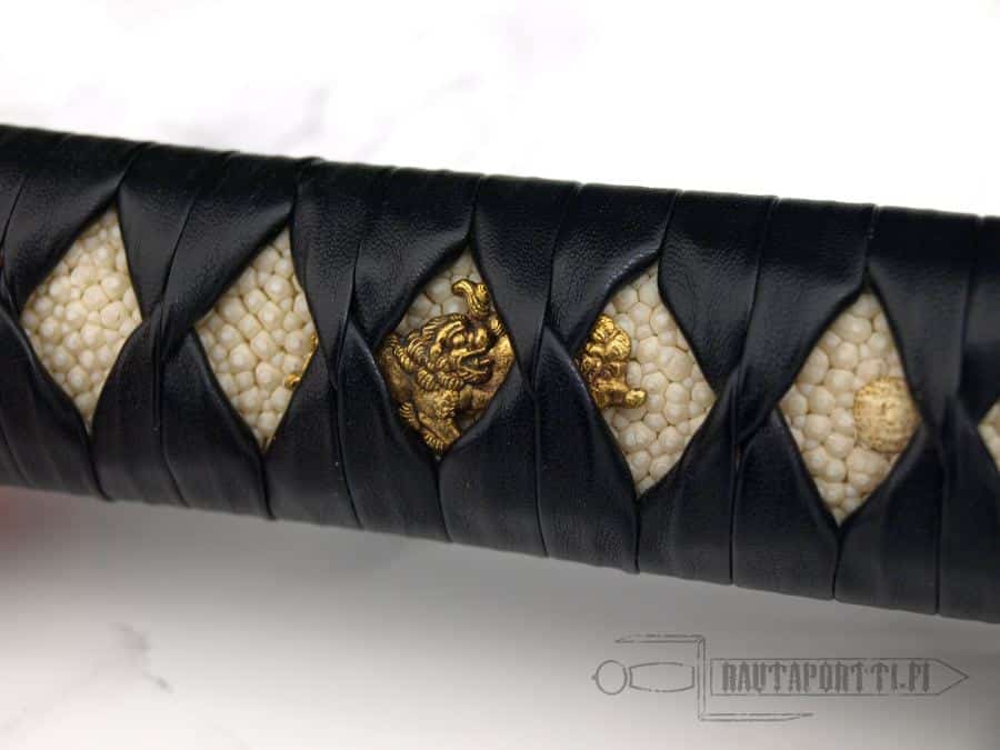 - Kahvanyörityksen alla pitoa lisäävä koriste (Menuki) on lohikäärme