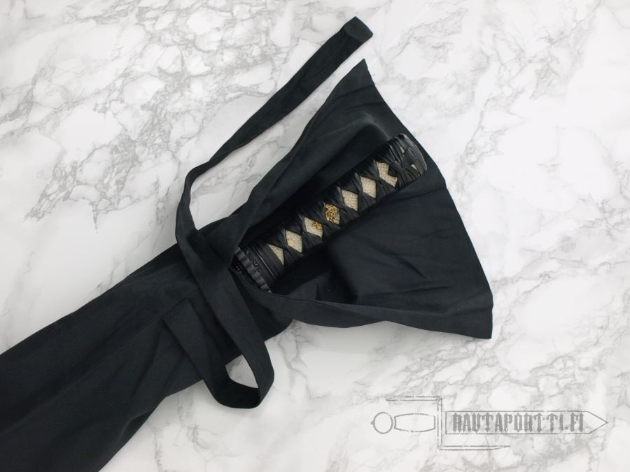 Wakizashin mukana tulee perinteinen musta kankainen suojapussi, joka suojaa miekkaasi niin varastossa kuin matkallakin.