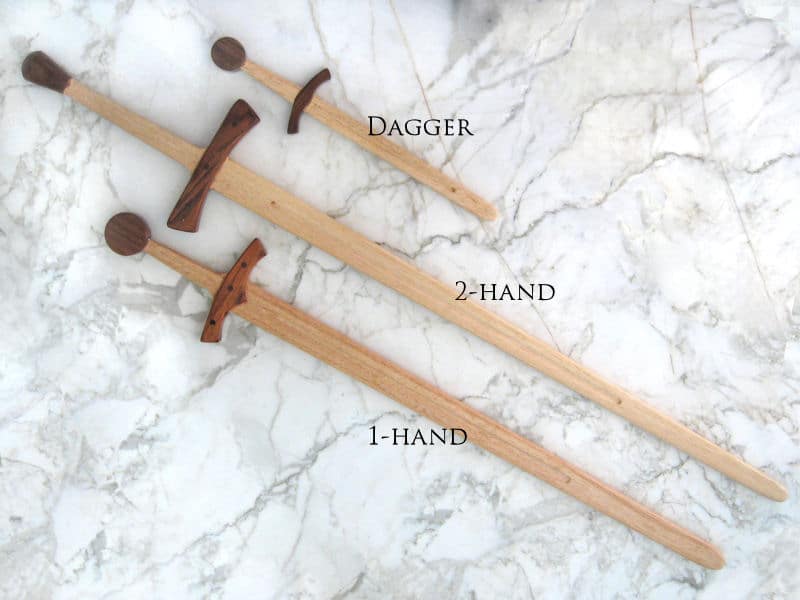 Puiset harjoitusaseet mahdollistivat sotureille turvalliset taisteluharjoitukset, jotka voitiin suorittaa täydellä voimalla ja nopeudella. Arvokkaiden teräsaseiden käyttö säästettiin todellisia tilanteita ja taisteluja varten. Myymämme mallit on valmistettu vahvasta kovapuusta ja kestävät niin sparraukset kuin kovemmatkin treenit. (Miekkaillessasi pidä kuitenkin mielessä, että puu saattaa haljeta syiden suuntaisesti) Reunat ja kärki on pyöristetty turvallista miekkailua varten. Nämä aseet edustavat tyylillisesti 1100–1400 –luvuille tyypillisiä malleja.