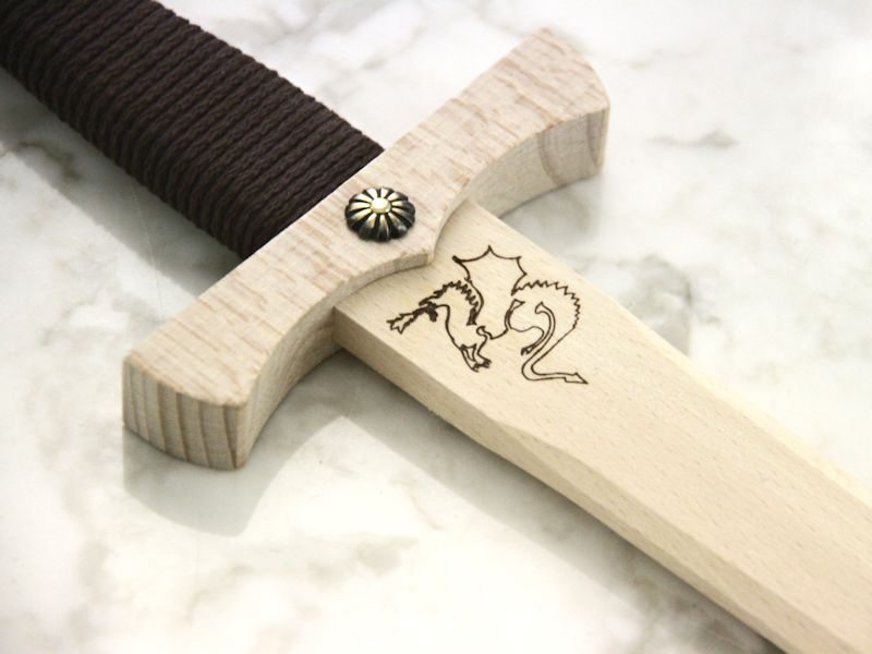 Puinen lohikäärmekuviolla koristeltu tikari on omiaan kaikkein pienimpien ritareiden käsiin. Aina ei tarvitse olla suuri ja mahtava soturi päästäkseen hiipien yllättämään nukkuvan lohikäärmeen. Puinen tikari on vankkatekoinen ja laadukas lelu kaikille taistelutaitojaan hioville pikku prinsseille ja prinsessoille. Sopii erinomaisesti myös vara-aseeksi isommalle lapselle, jolta miekka jo löytyy.