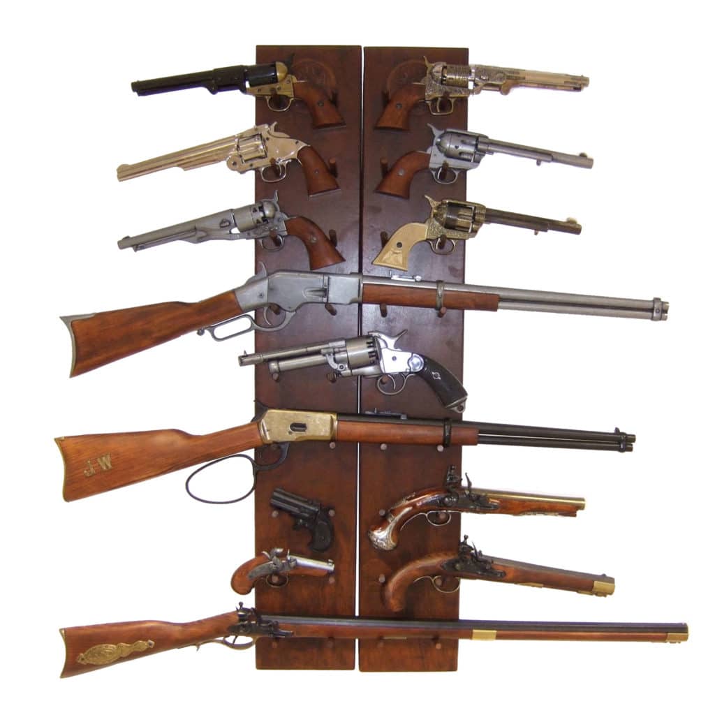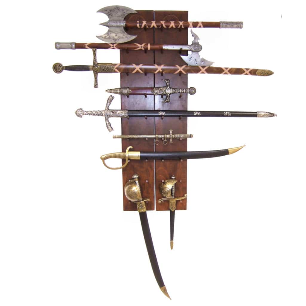 Puinen seinäteline monelle erityyppiselle aseelle Soveltuu erinomaisesti koristeaseiden esillepanoon seinälle