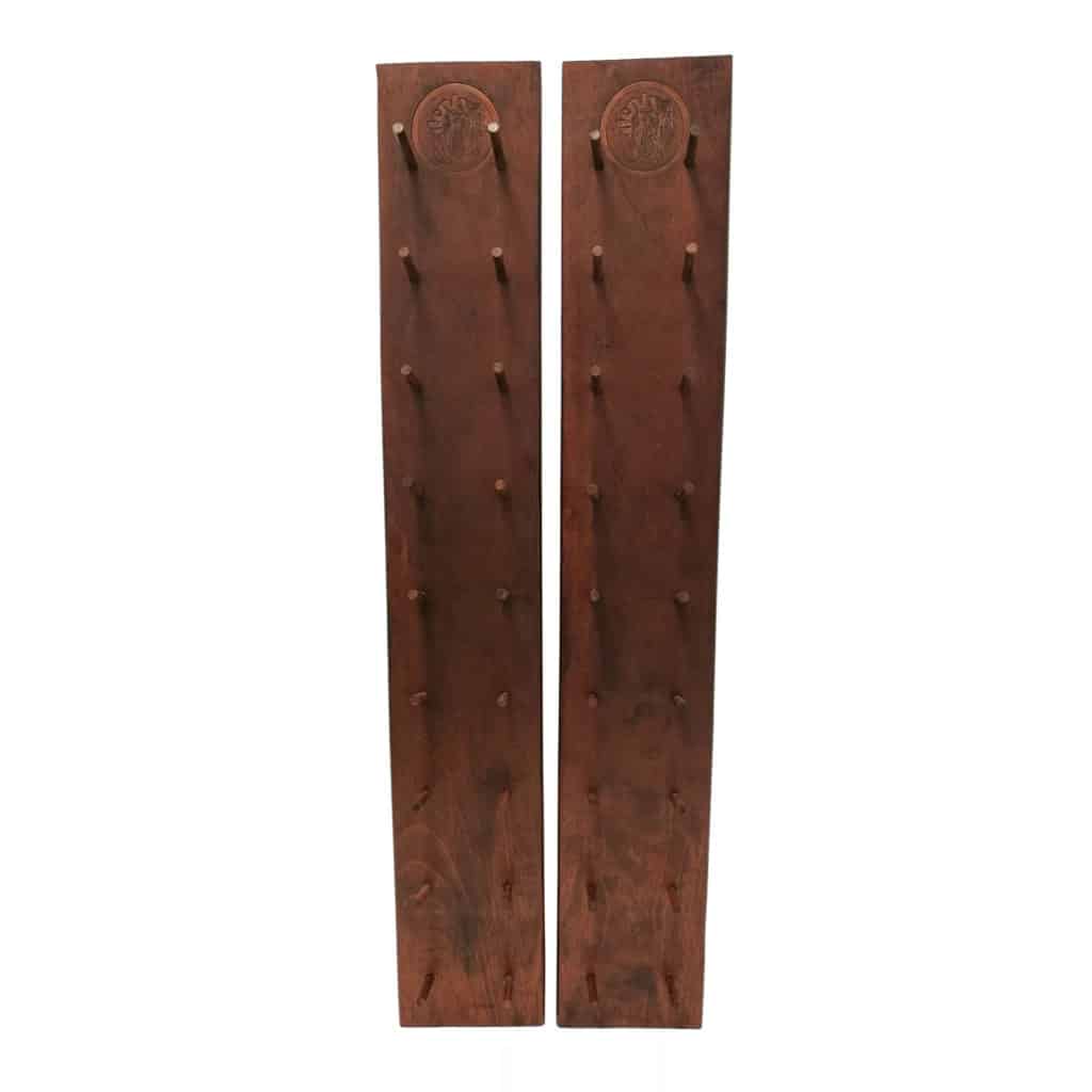 Puinen seinään kiinnitettävä aseteline.