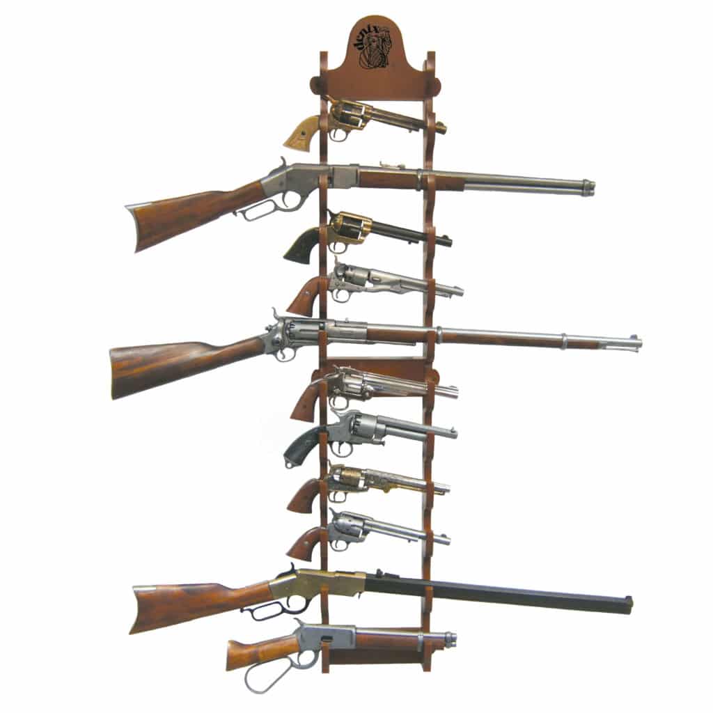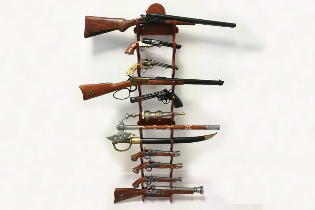 Puinen seinäteline monelle erityyppiselle aseelle Soveltuu erinomaisesti koristeaseiden esillepanoon seinälle