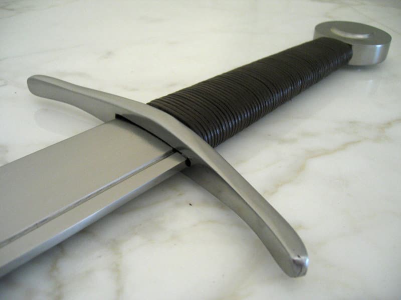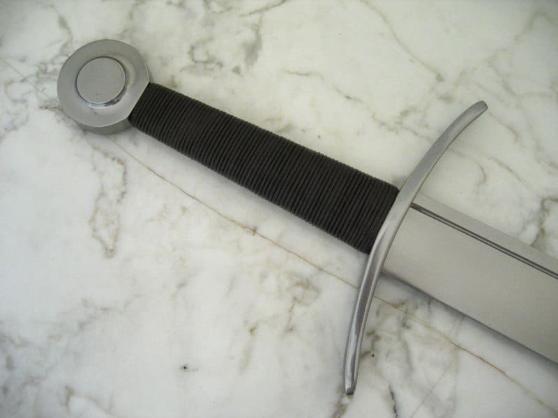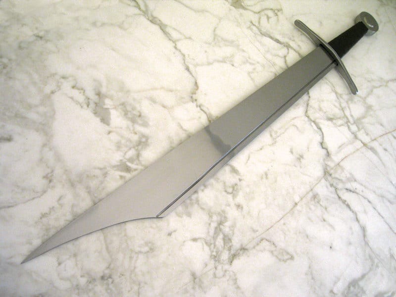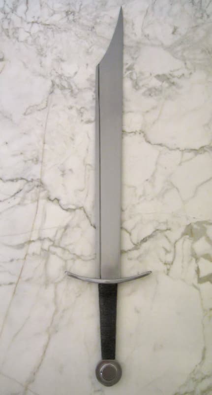 Tällaiset miekat olivat yhdistelmä perinteisiä yhden käden Falchioneita ja varhaisemmin käytössä olleita suuria kahden käden viiltoaseita. Leveä yksiteräinen terä viiltää rakenteensa ansiosta uskomattoman tehokkaasti. Miekkaan on kuitenkin rakennettu tehokkaan viiltämiseen tarkoitetun terän lisäksi häijy kärki pistohyökkäyksiä varten. Miekan terä on hallittavissa hyvin yhdellä kädellä, mutta pitkä kahva mahdollistaa pitkän vipuvarren nopeisiin ja voimakkaisiin kahden käden lyönteihin. Yllättävän nopea ase kokoisekseen miekaksi. Hiiliteräksiset väisti, ponsi ja käsin taottu terä. Kahva on nahkanyörillä päällystettyä puuta.