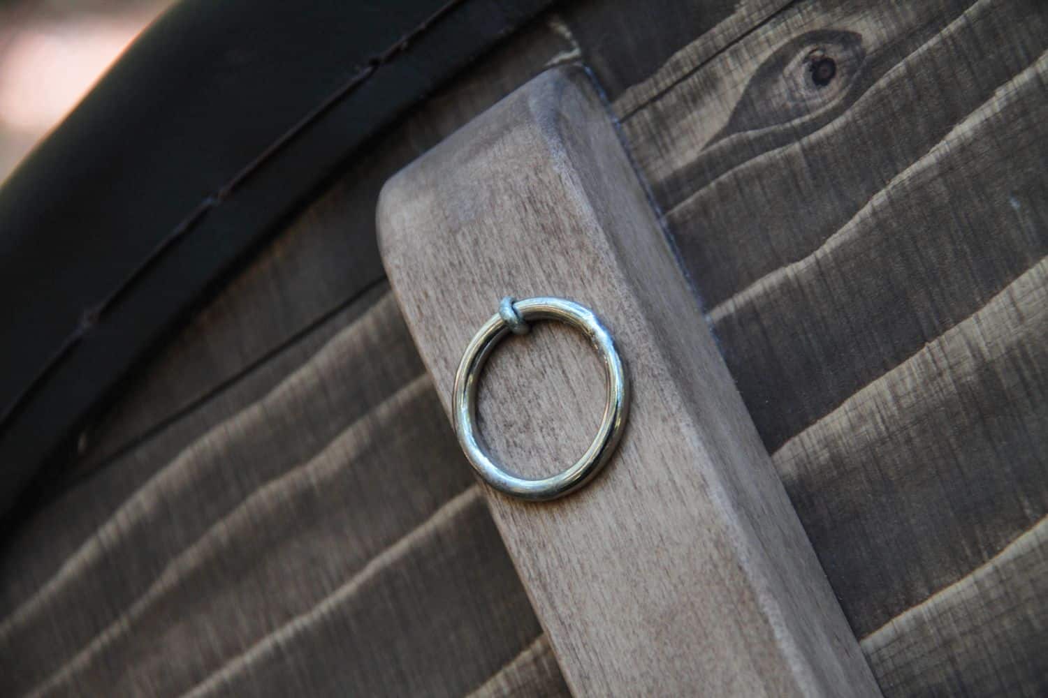 - Reunaa kiertää rakennetta vahvistava köysi, jonka päällä 3mm paksu nahka.