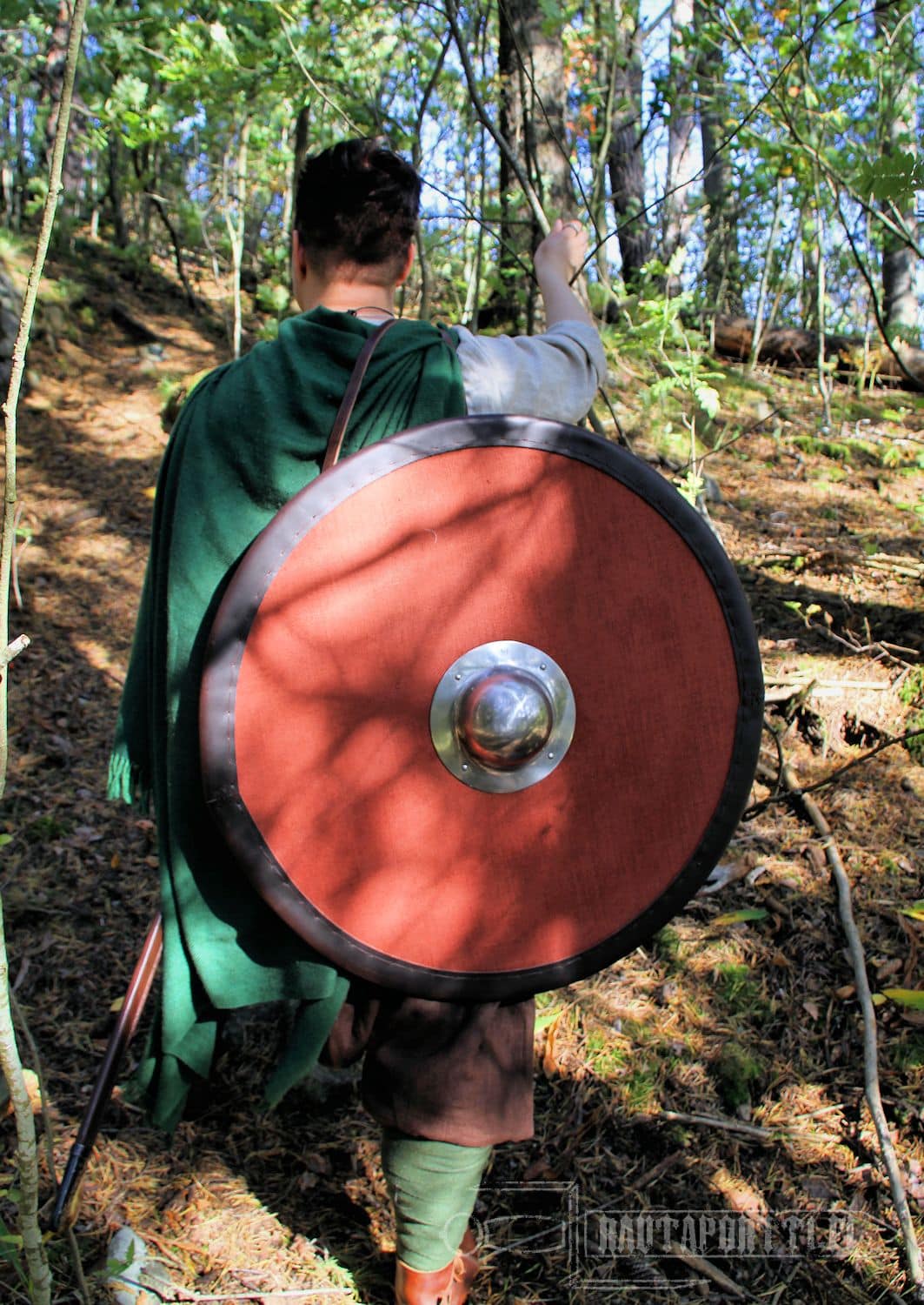 Kilpiä ei käytetty pelkästään passiivisesti iskujen torjumiseen vaan myös monipuolisesti erilaisissa hyökkäyksissä. Tämä tukeva ja testatusti kovaa taistelukäyttöä kestävä kotimaista käsityötä oleva viikinkikilpi on ehdoton lisä jokaisen viikinkisoturin varustukseen.