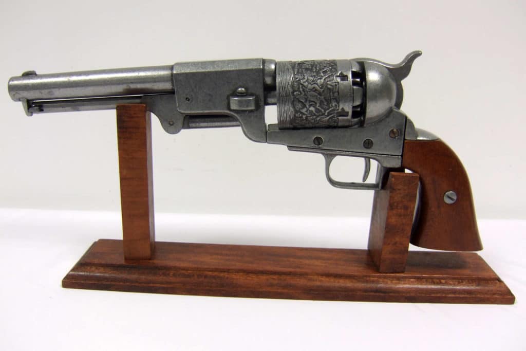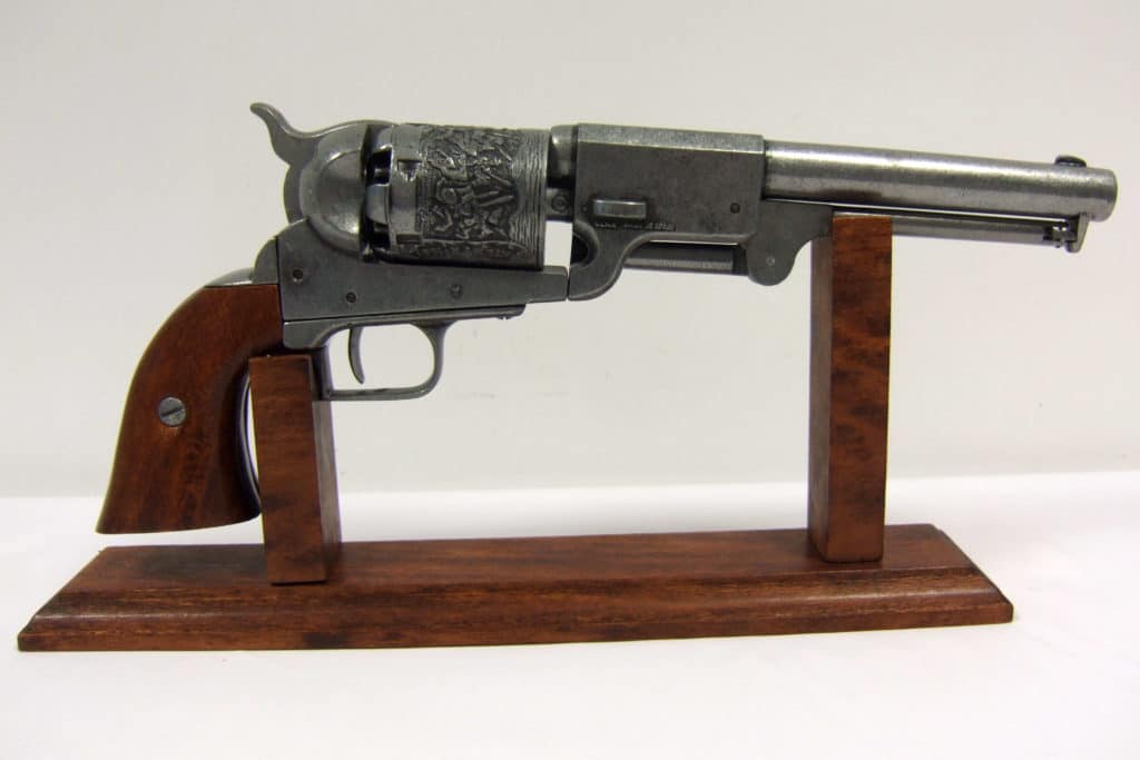 Jäljennös Coltin valmistamasta vuoden 1848 revolverista. Tämä 44 kalibeerinen revolveri suunniteltiin Yhdysvaltain rakuunien (Dragoon), eli ratsuväkijoukon käyttöön. Se korvasi aikaisemman Walker revolverin, joka oli kömpelö käyttää ja kärsi latausongelmista. Aseesta tuli suosittu 1850-1860 luvuilla siviilien käytössä ja sitä käytettiin jopa Yhdysvaltojen sisällissodassa.