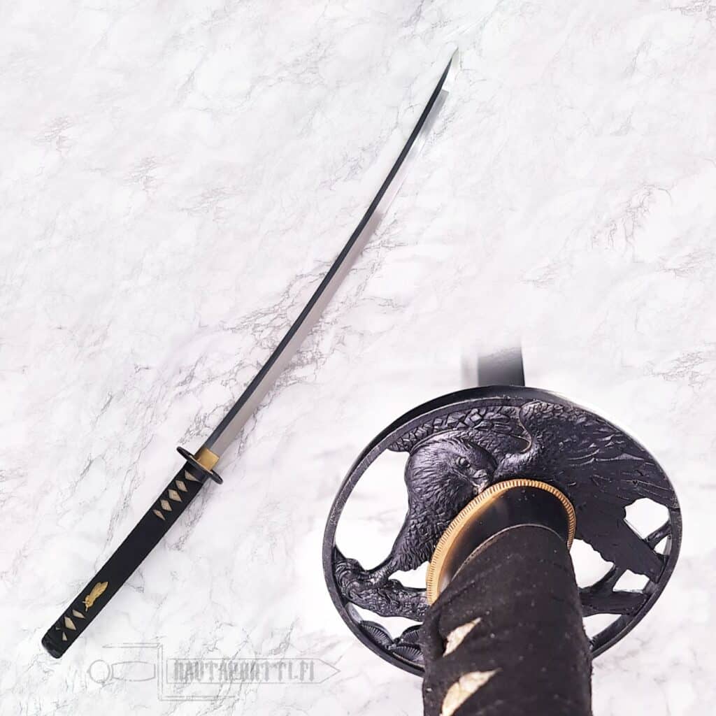 Raptor-sarjan katania on saatavilla usealla eri terämallilla. Tässä Raptor-katanassa on Nanbochuko Zukuri mallin terämalli.