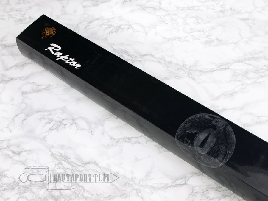 Raptor-sarjan Katanan terä on taottu korkealaatuisesta 5160 hiiliteräksestä ja karkaistu siten että teräs muodostaa kovan martensiittirakenteen. Terän kovuus on HRC57. Täysruoti (nakago) on kiinnitetty tsukaan perinteisesti kahdella bambutapilla. Tsukassa (kahvassa) on puinen sisus ja se on päällystetty aidolla rauskunnahalla (same). Tsuka-ito (kahvan nyöritys) on kulutuksenkestävä, venymätön ja mokkapintainen hyvän otteen varmistamiseksi. Menuki, tsuka-iton alla oleva pitoa lisäävä messinkinen koriste, on tyyliin sopiva petolinnun sulka. Tsuba on perinteistä mustattua terästä ja siinä on sarjan nimen mukaisesti petolintu-motiivi, kuten myös fuchissa ja kashirassa, kahvan ylä- ja alapäässä olevissa heloissa. Saya, eli tuppi, on puinen ja se on lakattu teksturoidulla sormenjälkiä hylkivällä lakalla.