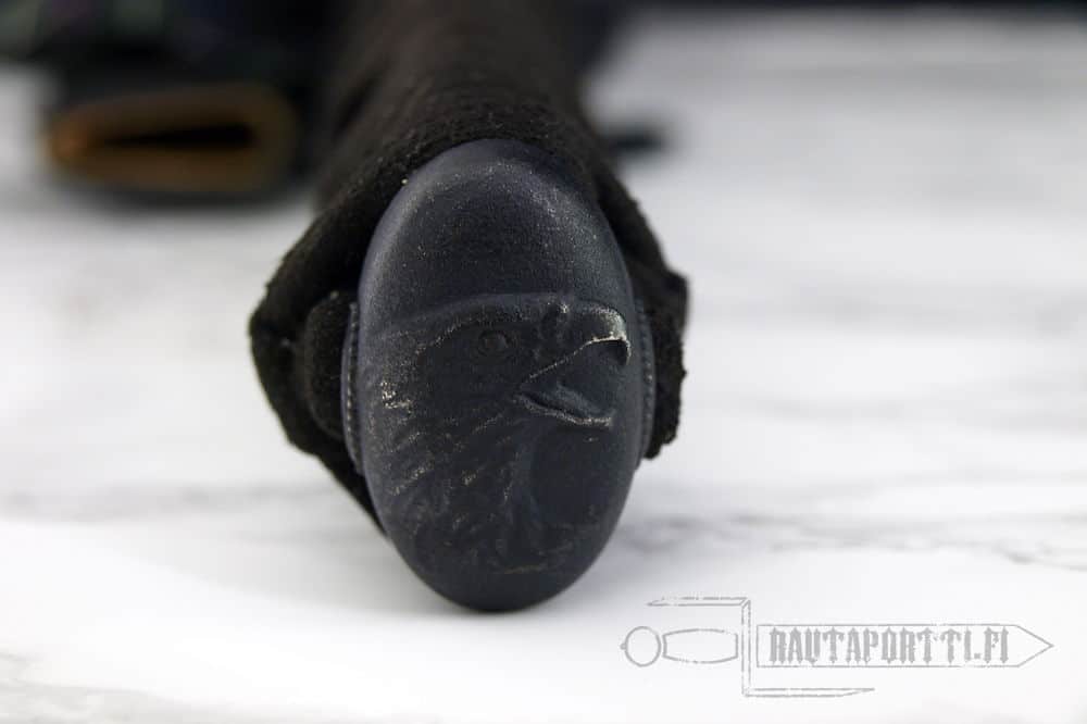 Raptor-sarjan Katanan terä on taottu korkealaatuisesta 5160 hiiliteräksestä ja karkaistu siten että teräs muodostaa kovan martensiittirakenteen. Terän kovuus on HRC57. Täysruoti (nakago) on kiinnitetty tsukaan perinteisesti kahdella bambutapilla. Tsukassa (kahvassa) on puinen sisus ja se on päällystetty aidolla rauskunnahalla (same). Tsuka-ito (kahvan nyöritys) on kulutuksenkestävä, venymätön ja mokkapintainen hyvän otteen varmistamiseksi. Menuki, pitoa lisäävä messinkinen koriste, on tyyliin sopiva petolinnun sulka. Tsuba on perinteistä mustattua terästä ja siinä on sarjan nimen mukaisesti petolintu-motiivi, kuten myös fuchissa ja kashirassa, kahvan ylä- ja alapäässä olevissa heloissa. Saya, eli tuppi, on puinen ja se on lakattu teksturoidulla sormenjälkiä hylkivällä lakalla.