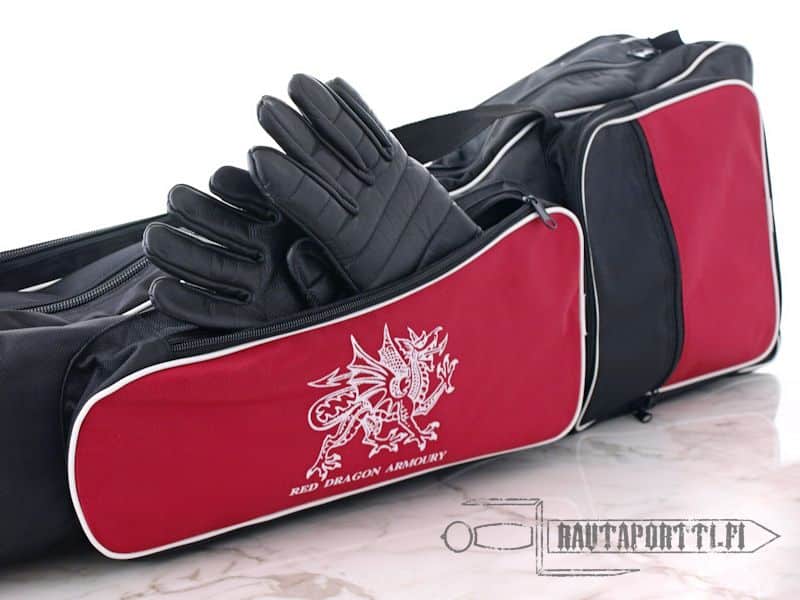 Red Dragonin vetoketjullinen miekkakassi on täydellinen lisä kaikille miekkailun harrastajille. Laukulla on pituutta 117 cm, eli siihen mahtuvat lähes kaikki yhden käden miekkatyypit. Laukku on jaettu kahteen täyspitkään osaan, mikä mahdollistaa terien pitämisen erillään.