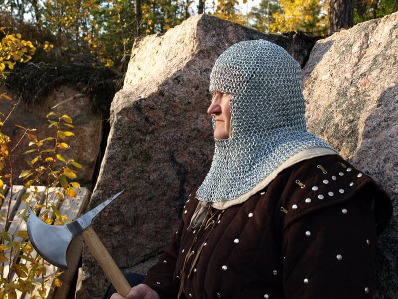 Rengashaarniskat ovat pelastaneet lukemattomien soturien hengen ja ovat siten olleet erittäin tavoiteltuja ja korkealle arvostettuja läpi aikakausien. Rengashaarniska oli soturin paras henkivakuutus aina varhaisten kelttien keskuudesta Euroopasta 1700-luvun Aasiaan. Myymämme malli on valmistettu 1,6 mm paksusta teräslangasta taivutetuista renkaista ja on rakenteeltaan perinteinen eurooppalainen rengashaarniska. Haarniskan silmukointi on tyypillistä neljä rengasta läpi viidennestä -tyyliä. Renkaat on valmistettu alkuperäisten mukaisesti hieman pehmeämmästä teräksestä.