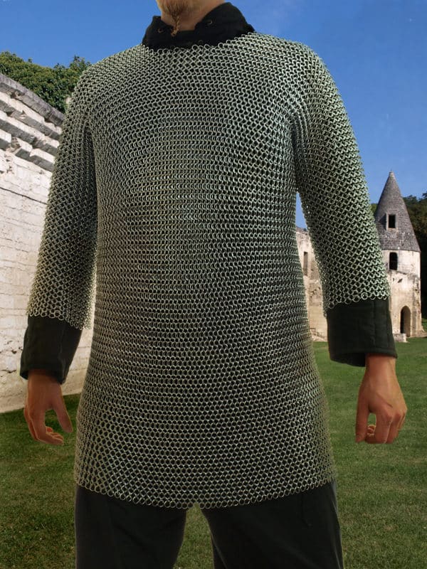Rengashaarniskat ovat pelastaneet lukemattomien soturien hengen ja ovat siten olleet erittäin tavoiteltuja ja korkealle arvostettuja läpi aikakausien. Rengashaarniska oli soturin paras henkivakuutus aina varhaisten kelttien keskuudesta Euroopasta ulottuen 1700-luvun Aasiaan. Myymämme malli on valmistettu 1,6 mm paksusta teräslangasta taivutetuista renkaista ja on rakenteeltaan perinteinen eurooppalainen rengashaarniska. Haarniskan silmukointi on tyypillistä neljä rengasta läpi viidennestä –tyyliä. Renkaat on valmistettu alkuperäisten mukaisesti hieman pehmeämmästä teräksestä.