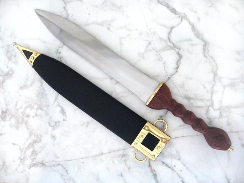 Pugio oli yleinen vara-ase koko legioonassa aina rivisotilaasta ylimpään sotajohtoon asti ja sopi mainiosti tiiviiseen lähitaisteluun Tämä tikari on uudelleenrakennettu British Museumissa säilytettävien jäännöksien pohjalta Mukana nahalla päällystetty puinen tuppi, jossa messinkiset vahvikkeet Kokonaispituus: 49,0 cm Paino: 0,45 kg Terän materiaali: 1065 hiiliteräs Kahvan materiaali: puu ja messinki Terävyys: Teroittamaton