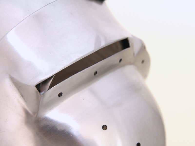 Tämä kypärä on tehty nimenomaan ”reenactment”-tarkoituksiin, eli turvalliseksi varusteeksi historianelävöittämisessä tapahtuvia taisteluita varten. Kypärä on valmistettu huolellisesti käsityönä 2 mm paksusta teräksestä. Kypärän sisusta on pehmustettu ja kypärässä on messinkiset niitit sivuilla ns. aventail–kauluksen, eli niskaa ja hartioita suojaavan rengashaarniskan, kiinnittämistä varten.