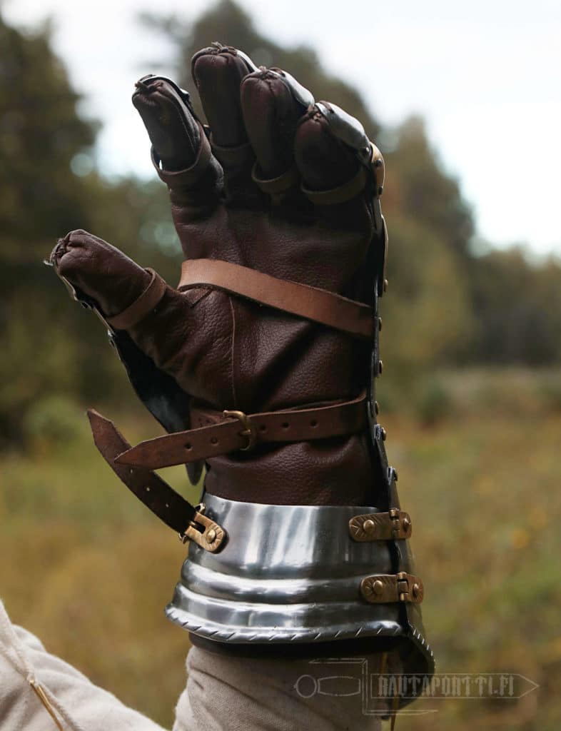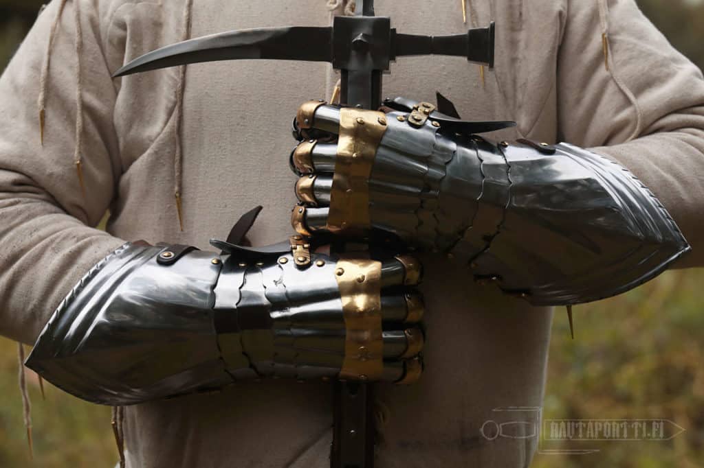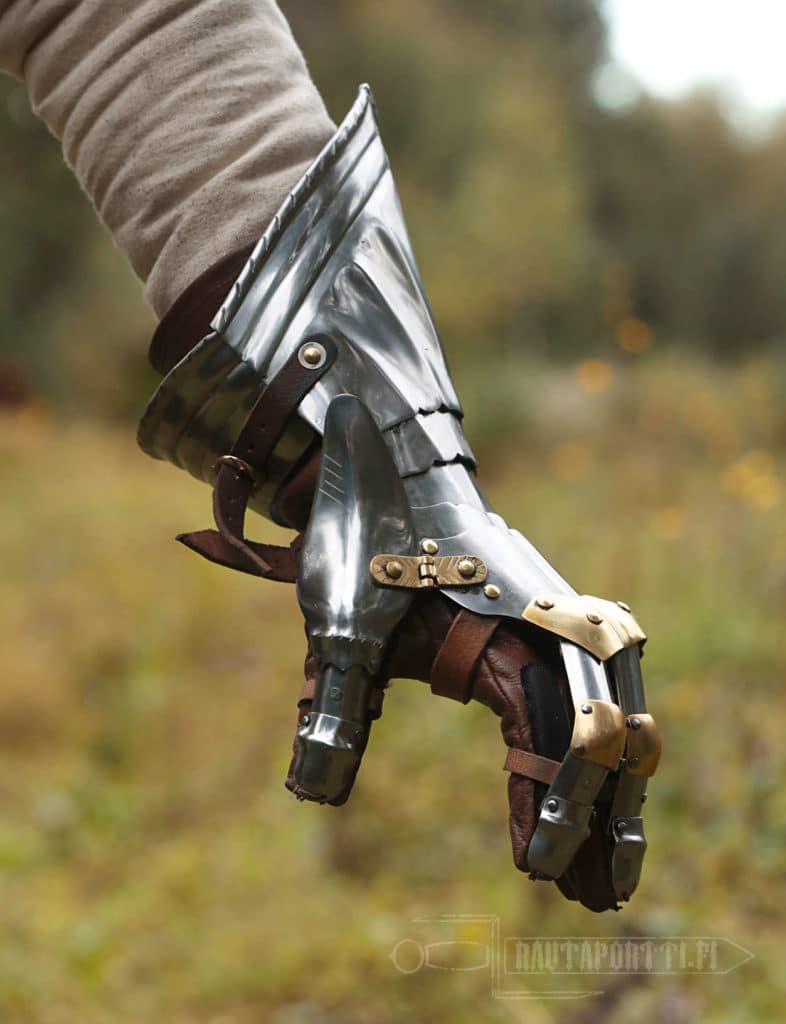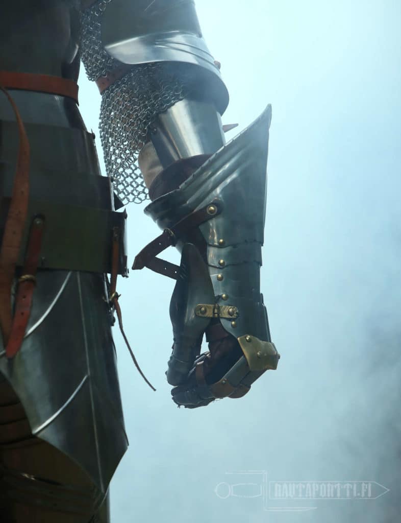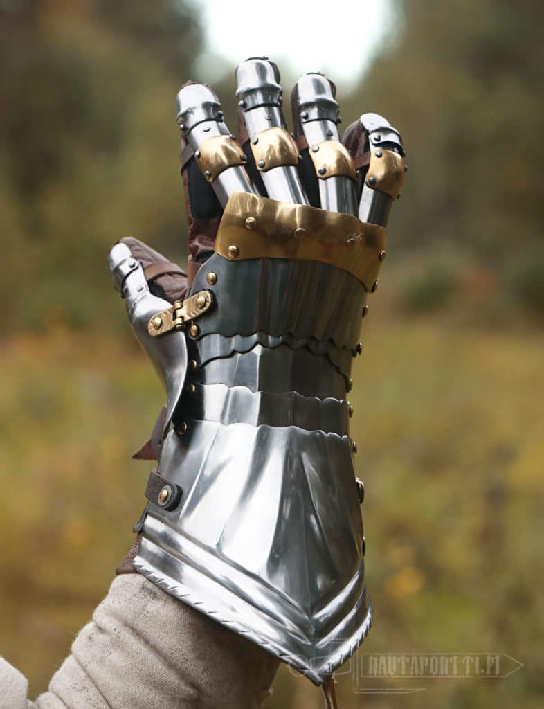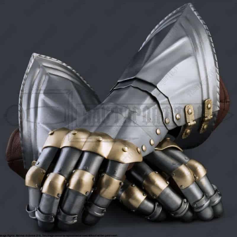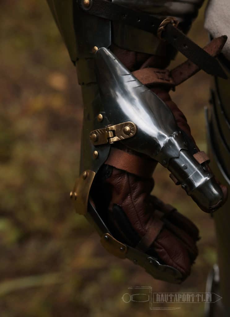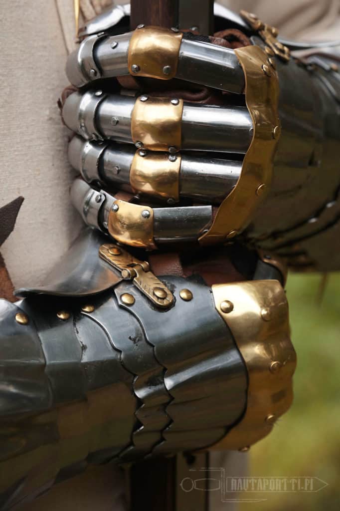 Kaikki ritarit käyttivät taisteluhansikkaita sormien ja käsien suojaamiseen. Esimerkiksi Fiore dei Liberi, vielä nykyäänkin tunnettu italialainen miekkamestari ja kirjailija 1500-luvulla, kirjoitti käyttävänsä aina kaksintaisteluissa taisteluhansikkaita. Taisteluhansikkaat ovat epäilemättä yksi monimutkaisimmista ja silti kauneimmista panssarikappaleista. Nämä taisteluhansikkaat on valmistettu 1400-luvun saksalaiseen panssarityyliin.