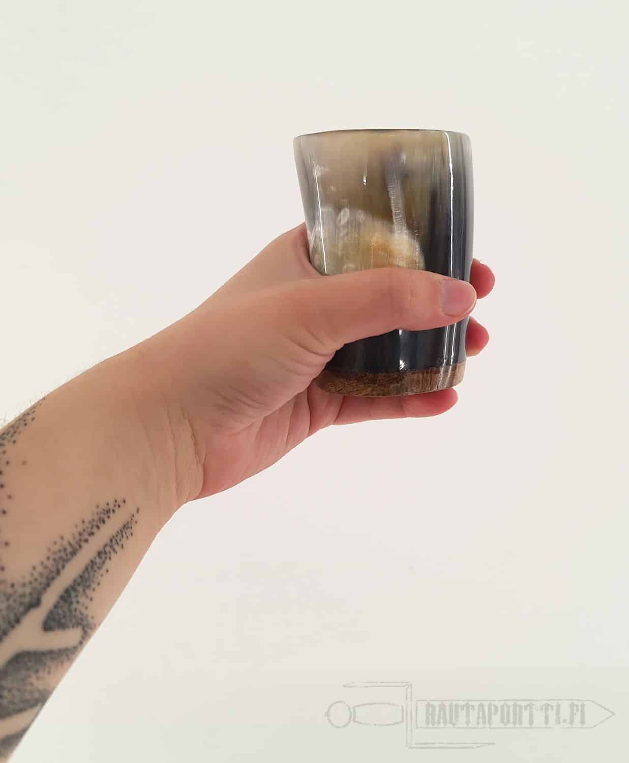 -Aitoa lehmänsarvea: Lasit on valmistettu aidosta lehmän sarvesta, ja jokainen kuppi on oma yksilönsä värin, muodon ja koon perusteella. Jokaisessa kupissa on puinen pohjalevy, joka lisää ripauksen luonnonläheisyyttä juomahetkeen.