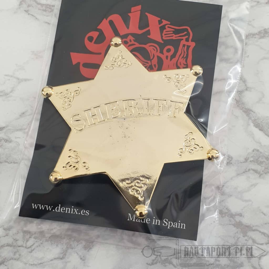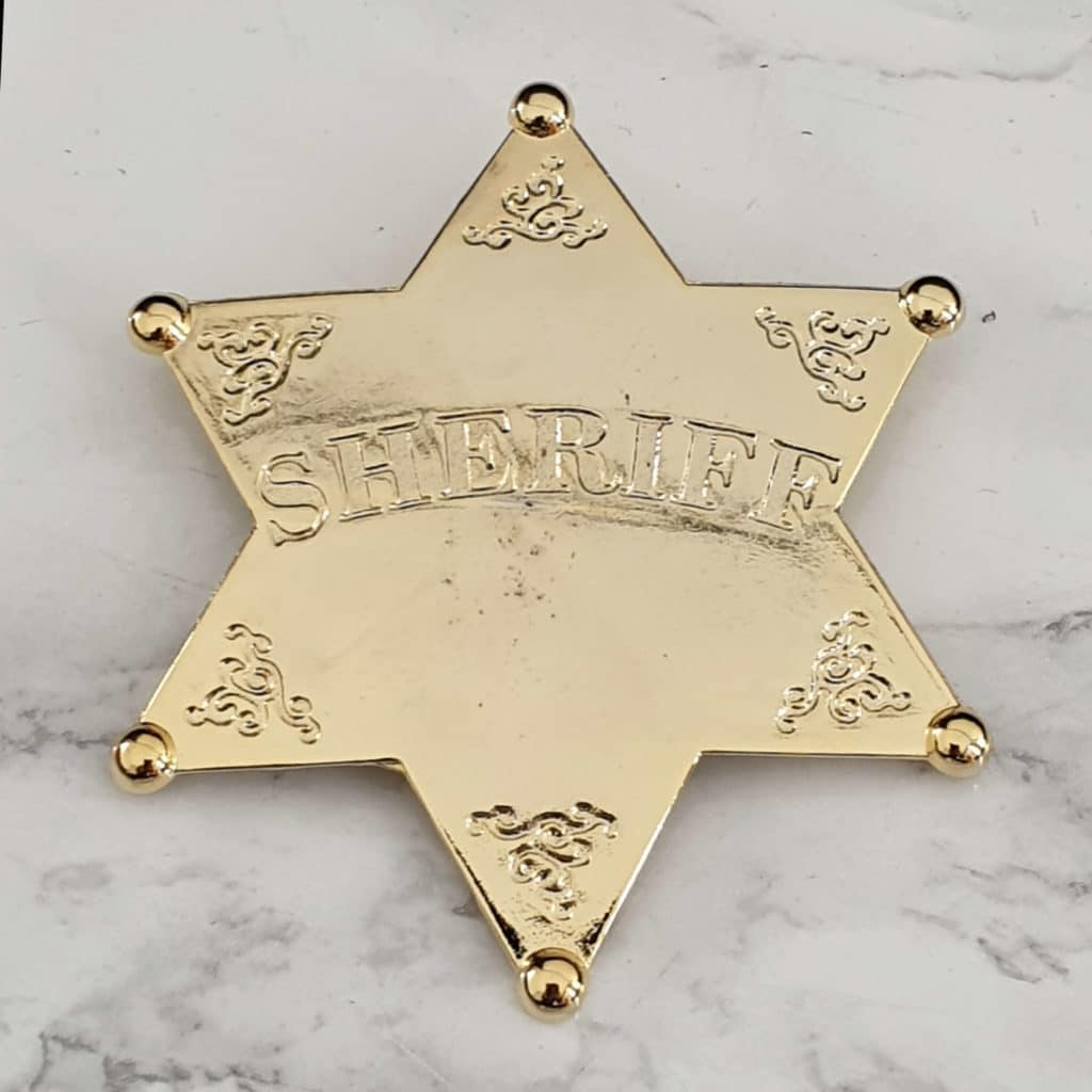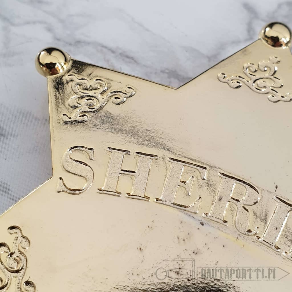 Kuusikärkinen Sheriffin tähti kiinnitysneulalla.