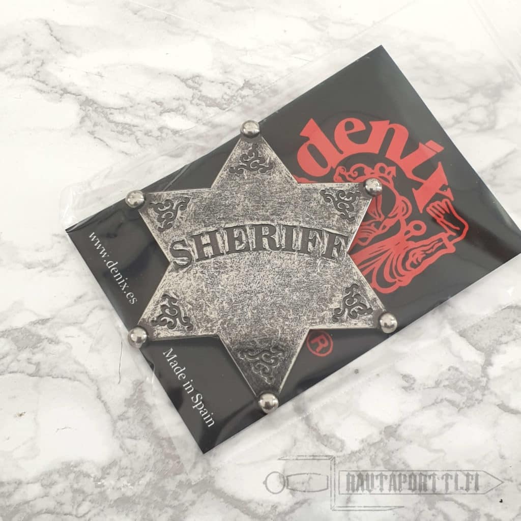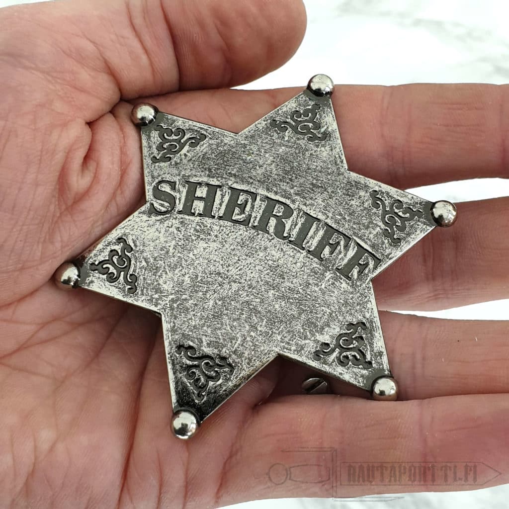 Sheriffin merkki, jossa on neula kiinnitystä varten Valmistettu metallivalusta (samakki) Soveltuu erinomaisesti historianelävöitykseen, teatterinlavalle, elokuva- ja videoprojekteihin, historiakeräilijöille ja koristeeksi