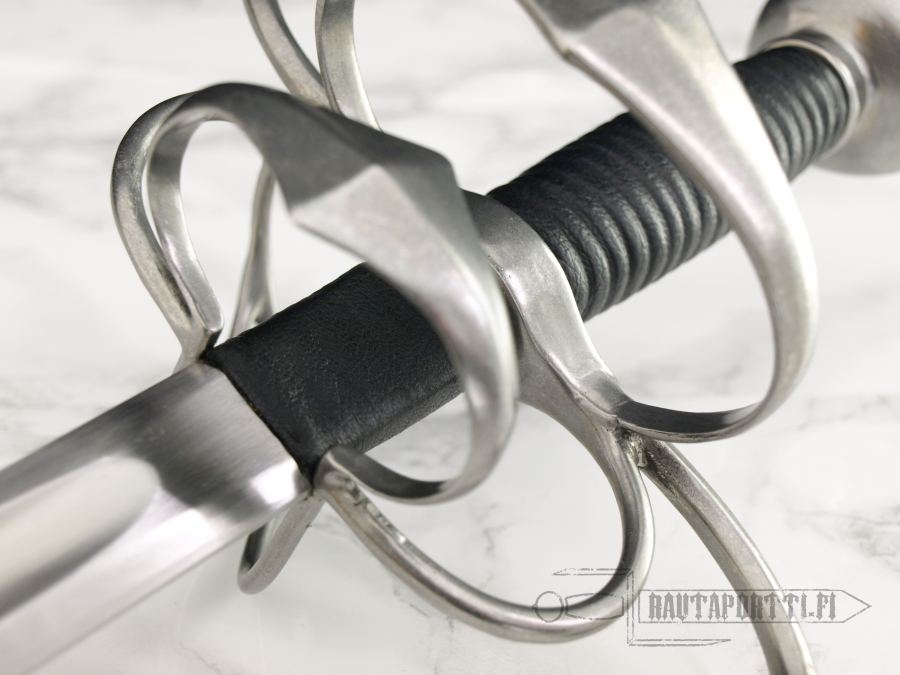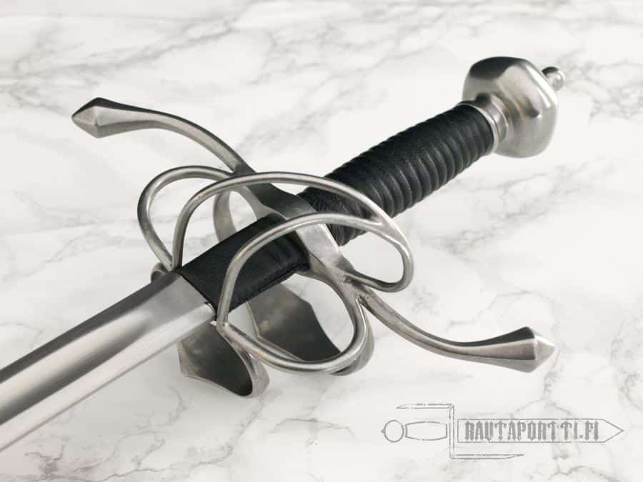 Seuraavana kehitysvaiheena väisti alkoi muuttua monimutkaisemmaksi, antaen miekkailijan kädelle lisäsuojaa. Taistelukentillä suosittuja teräksisiä taisteluhansikkaita ei kannettu siviilissä ja taistelukentilläkin taisteluhansikkaat kävivät pikkuhiljaa harvinaisimmiksi kevyemmin varustettujen jalkajoukkojen parissa, missä käytettiin niin varsijousia, kahden käden varsiaseita kuin varhaisia tuliaseitakin, joten käden suojaamiseksi keksittiin lisätä itse miekkaan kättä suojaavia osia. Ensimmäisissä 1400-luvun lopun spada da lato –miekoissa klassiseen suoraan väistiin on lisättynä vain pari lisärautaa ja viimeisimmissä 1600-luvun side sword–miekoissa kahvarakenne on yhtä monimutkainen ja hienostunut kuin rapiireissakin suojaten kättä yhtä hyvin kuin jos miekkailijalla olisi taisteluhansikas kädessään. Tämä myymämme side sword –malli on selvästi myöhäisempää 1500-luvun tyyliä/kehitystä, sillä kahvarakenne on pitkälle kehittynyt ja suojaa erittäin hyvin kättä, vastaten lähes täysin tulevien vuosien rapiirin käsisuojaa. Tällaisen side sword –miekan ainoana erona rapiiriin onkin miekan jykevämpi terä, rapiirin ollessa ensisijaisesti vain pistämiseen suunniteltu kevyemmällä ja kapeammalla terällä varustettu miekka.