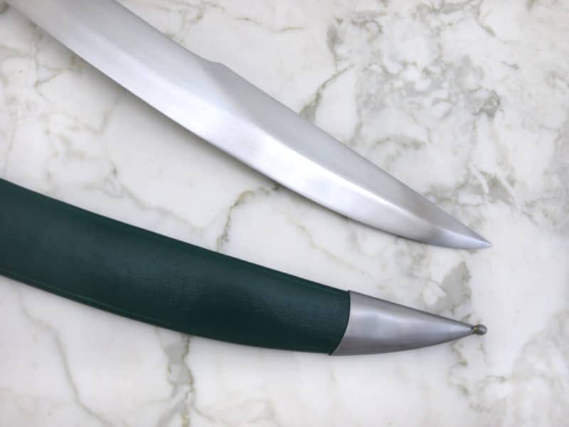 Cutlass-miekkoja käytettiin laivoilla 1400-luvulta lähtien 1800-luvulle Mukana tummanvihreä nahkainen tuppi teräsheloilla Kokonaispituus: 79,5 cm Paino: 1,5 kg Terän materiaali: 1065 hiiliteräs Terävyys: Teroittamaton