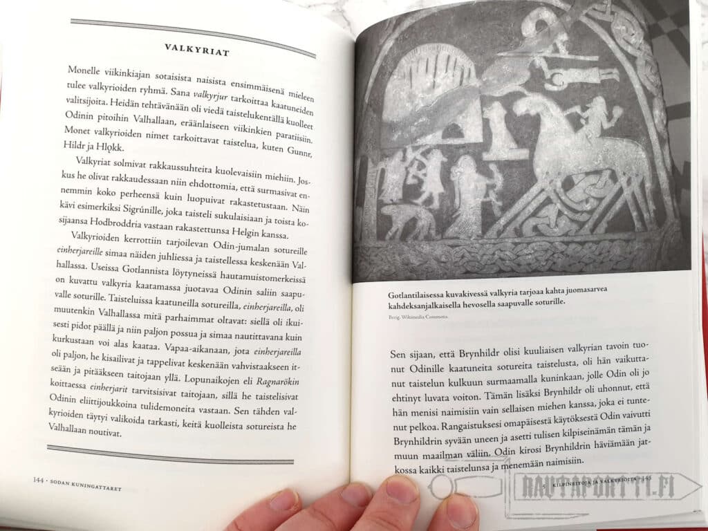 Viikinkiajan Pohjolassa kilpineidot sotivat miesten rinnalla kaukomaille ulottuneilla retkillä. Antiikin kreikkalaiset kertoivat tarinoita hurjista amatsoneista ja heidän sotahevosistaan. Historia on täynnä tarinoita naispuolisista sotureista tai sodan jumalattarista, jotka aikaisemmin on haluttu lähinnä unohtaa tai sivuuttaa. Karolina Kouvolan kirja johdattaa näiden sodan kuningattarien jäljille.