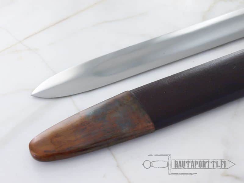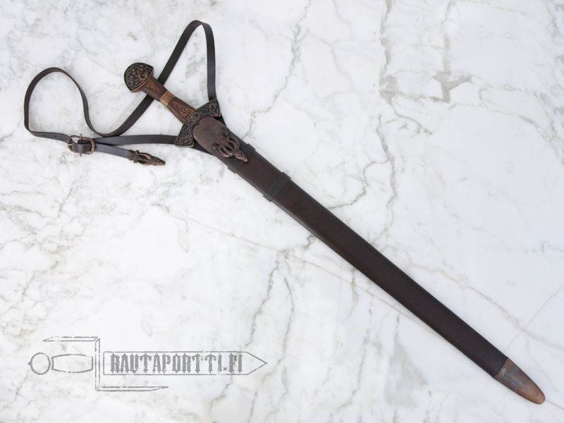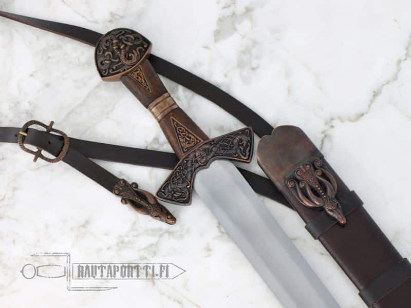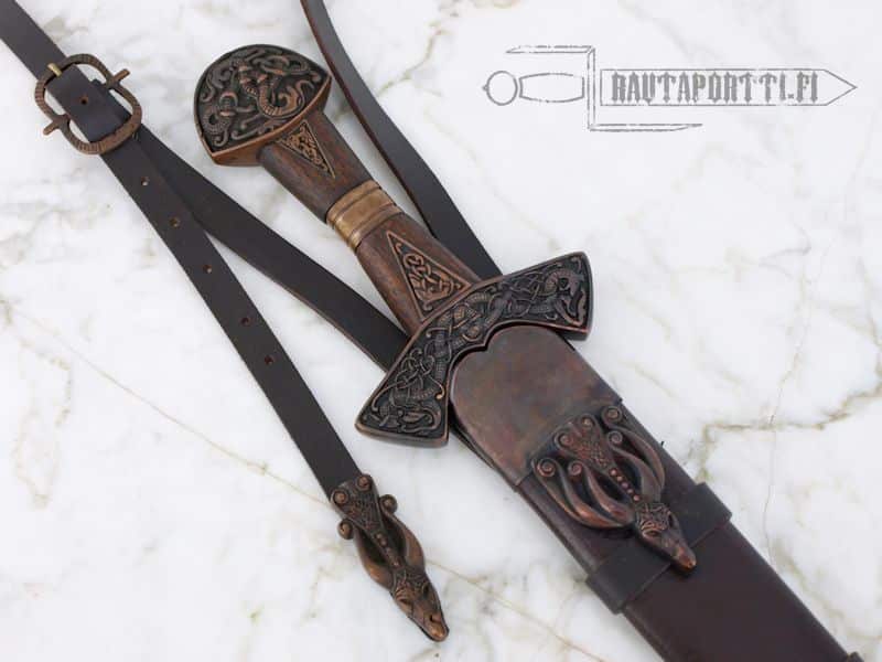 Alkuperäinen miekka on nähtävillä Kansallismuseossa Helsingissä. Rautaportin versiossa tästä upeasti säilyneestä kansallisaarteesta on yksityiskohtainen solmukuvioitu kuparipäällysteinen ponsi, väisti ja kahvakoristeet. Korkealaatuisessa käsin taotussa hiiliteräksisessä terässä on luonnollisesti täyspitkä ruoti, joka jatkuu kahvan läpi ja päättyy ponnen päähän, johon se on niitattu – kuten alkuperäisessäkin. Miekan mukana tulee kuvissa näkyvä ylellinen nahkahuotra, jossa on tyyliin sopivat kuparivahvikkeet/-koristeet, sekä olkavyö, jolla mahtiaseen saa kiinnitettyä suoraan ylle. Miekka toimitetaan koristeellisessa lahjapakkauksessa.