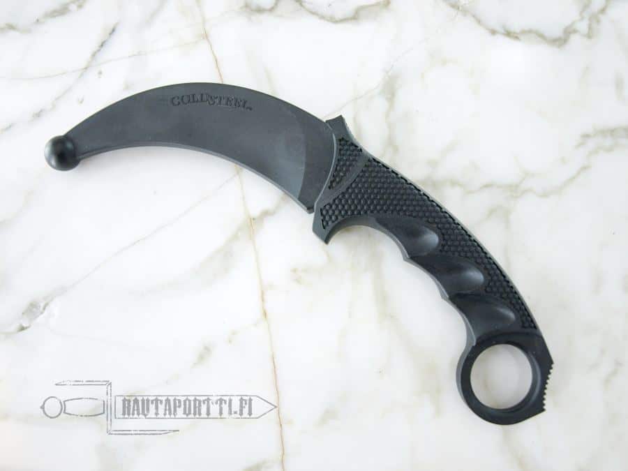 Karambit on pieni kaakkois-Aasialainen kynttä muistuttava kaareva veitsi, jota lännessä käytetään lähinnä aseena taktisessa itsepuolustuksessa. Tämä karambit on suunniteltu näyttämään niin realistiselta kuin mahdollista, jotta sitä voi käyttää tehokkaasti niin yksinään, liikesarjojen harjoittelussa, aseistariisuntamanöövereissä kuin havainnollistamisesityksissäkin. Synteettinen ase käy kaikkeen missä tarvitset mahdollisimman realistisen aseen, mutta et oikean aseen mukanaan tuomaa välitöntä ja vakavaa vaaraa. Veitsen kahva on kuvioitu pitävän otteen varmistamiseksi. Tämä synteettinen harjoitusase on edullinen, toiminnallinen ja hyvin kestävä.
