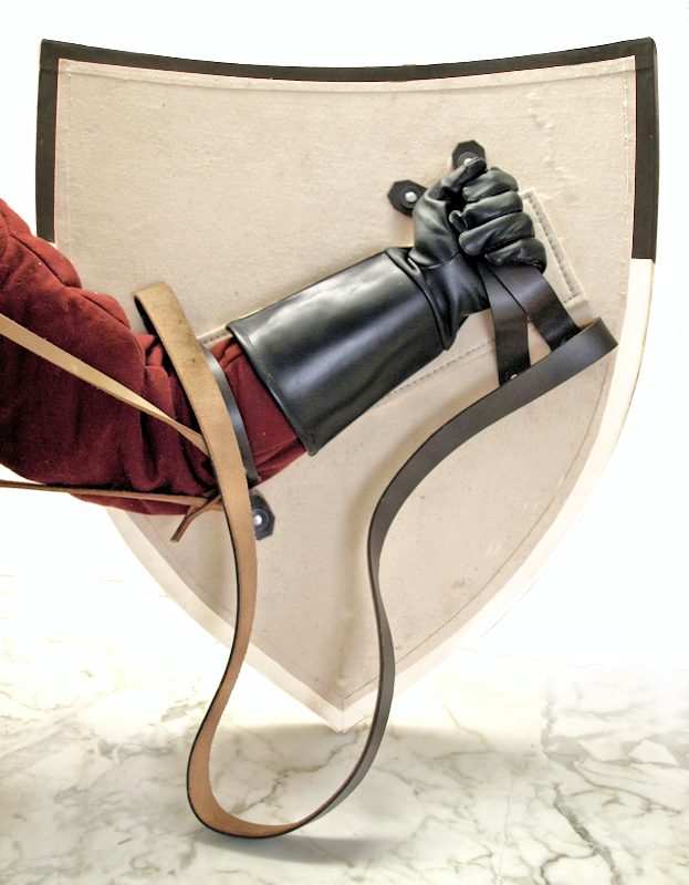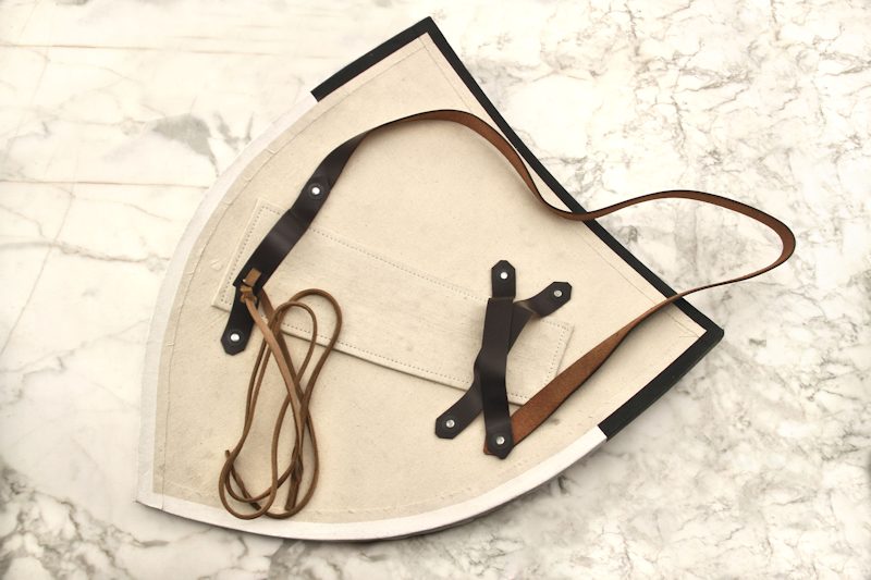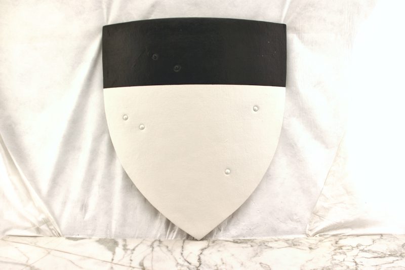 Tämä myymämme ritarillinen kilpimalli on taistelun kestävä ja ehdottomasti alkuperäistensä veroinen. Kilven kestävä sisärakenne on kaarevaksi taivutettua puuta. Puukilpi on etupinnalta pehmustettu, jotta synteetiset ja pehmoaseet eivät vahingoittuisi taisteluharjoitusten tuoksinnassa. Pehmoaseet ja synteettiset aseet saattavat kärsiä kovaan pintaan tai reunaan iskusta. Kaareva kilpi on lopuksi päällystetty tukevalla canvas-kankaalla. Kilven takana on taistelijan mukaan säädettävät nahkaiset hihnat. Pisimmän nahkahihnan avulla kilven saa ripustettua selkään tai kyljelle roikkumaan taistelun tauotessa.