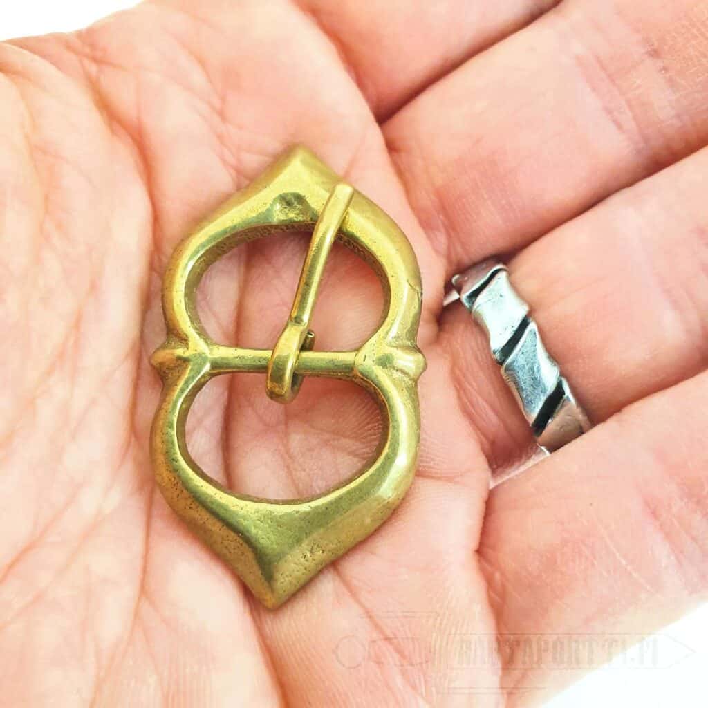 Teräväkärkinen kaksoissolki renessanssin ja löytöretkiajan taitteesta 1550-1650. Tämä vyönsolki sopii täydellisesti tee-se-itse -projekteihin sekä varusteiden korjaukseen.