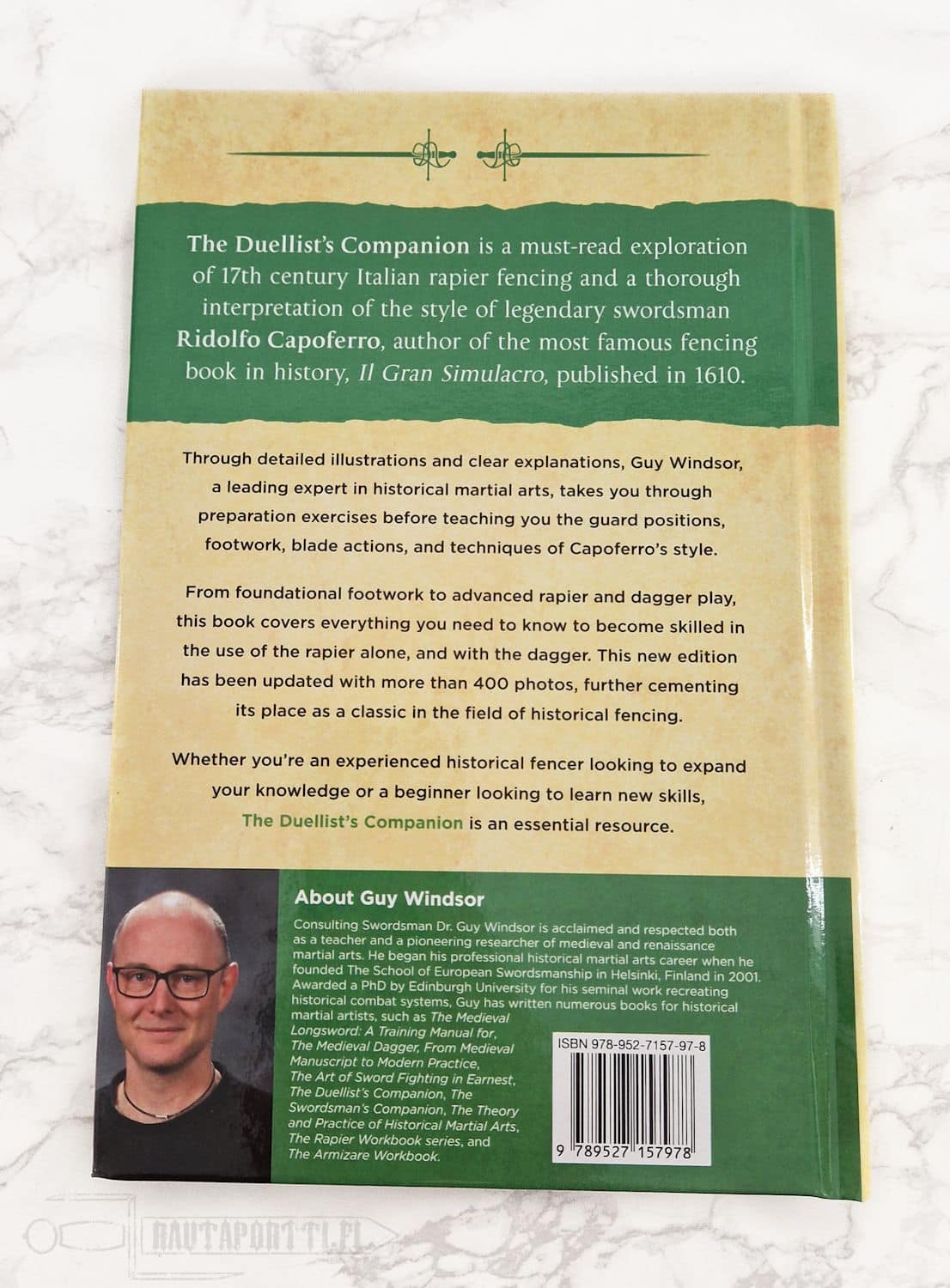 Guy Windsorin kirja The Duellist’s Companion on täydellinen harjoitteluopas joka perehdyttää lukijansa 1600-luvun italialaiseen rapiirimiekkailuun (pistomiekkailuun). Italialainen miekkailutyyli levisi kaikkialle euroopassa ja hallitsi kaksintaisteluareenoita aina 1800-luvulle saakka. Kirja on huolellinen tulkinta legendaarisen miekkamiehen Ridolfo Capo Ferron miekkailutyylistä. Capo Ferron 1610 julkaistu kirja Gran Simulacro on yksi maailman kuuluisimmista miekkailuteoksista. Kirjan avulla opit: harjoitusvälineiden valinnan, askelkuviot ja miekkailuasennot, yksin tehtävät harjoitukset, perushyökkäykset- ja torjunnat, pariharjoituksia ja pistomiekka ja torjuntatikari –harjoituksia päätyen lopulta vapaaseen miekkailuun harjoitusparisi kanssa.