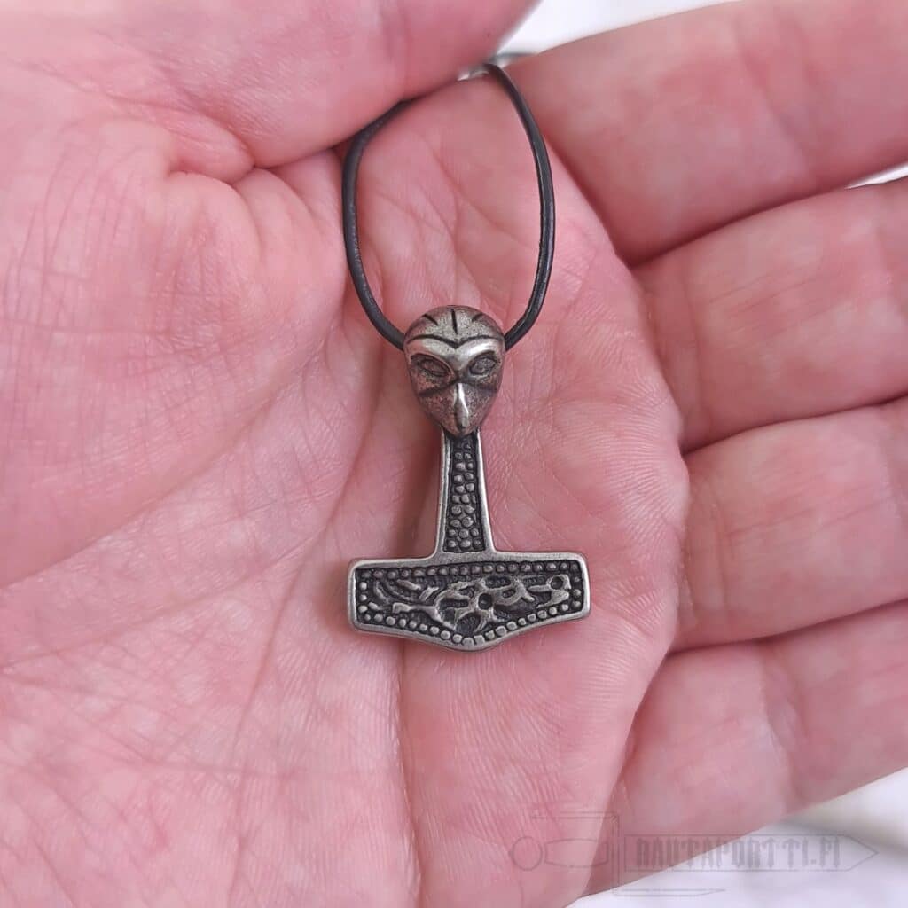 Tämä vasara-riipus on jäljennös Tanskan Mandemarkesta, Møn saarelta, löydetystä viikinkiaikaisesta vasara-riipuksesta. Se on valmistettu samakki-metalliseoksesta, ja on väriltään hopea.