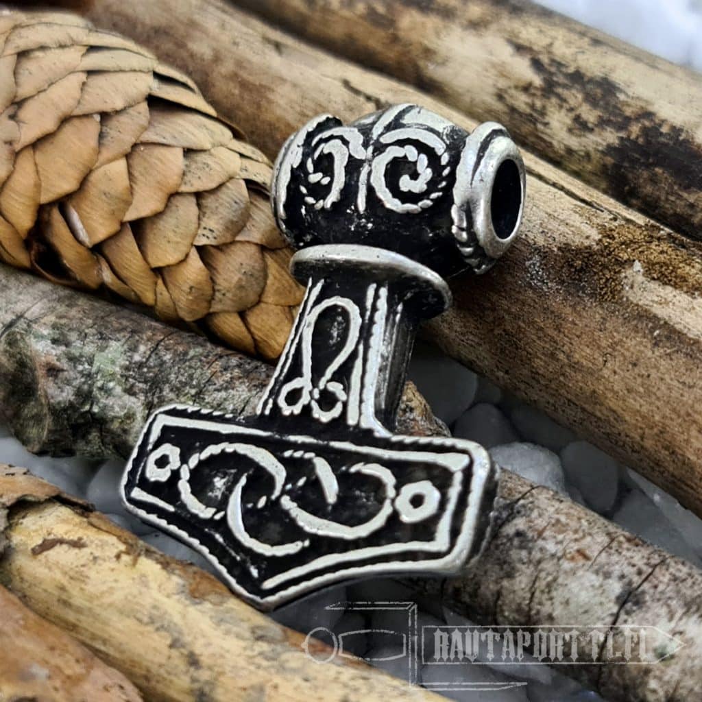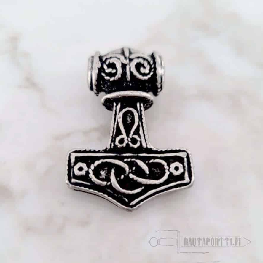 Tämä vasara-riipus pohjautuu useampaan viikinkiajan riipuslöydökseen Ruotsista. Riipus on valmistettu samakki-metalliseoksesta, ja värivaihtoehtoina löytyy sekä hopea että pronssi.