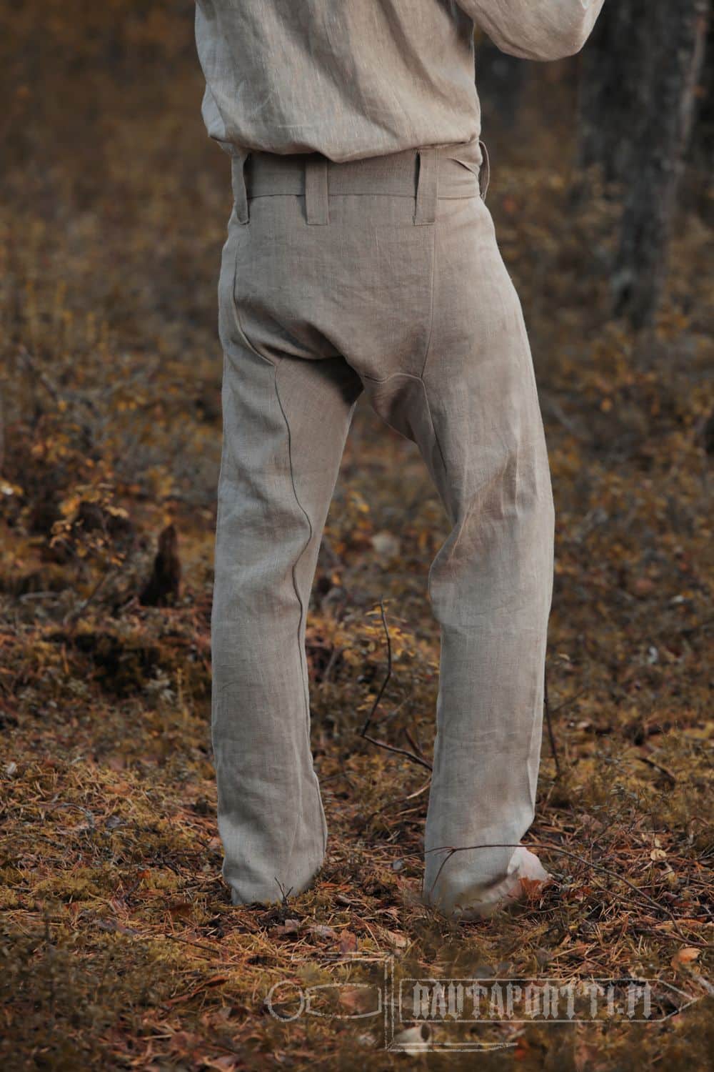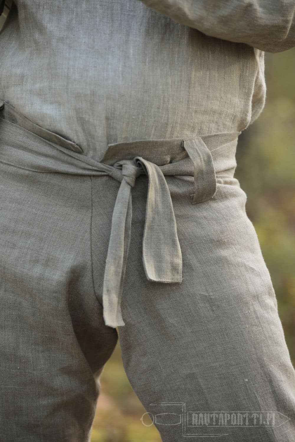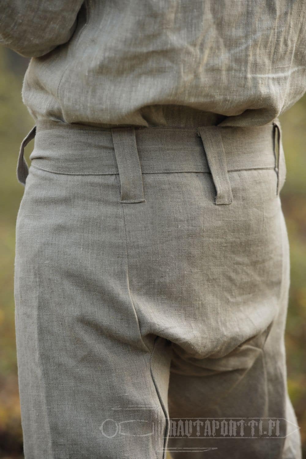 • Sisältää pellavaisen kangasvyön, mutta housuissa voi käyttää myös nahka- tai naruvyötä