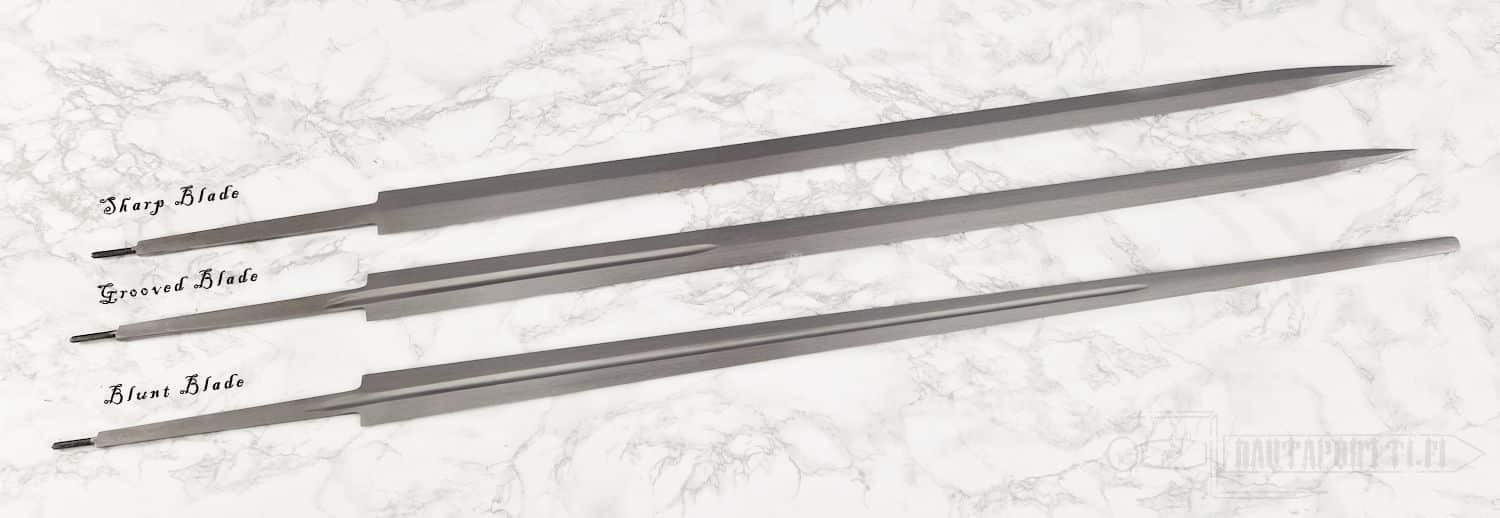 Terävässä miekassa säilä on poikkileikkaukseltaan timantin mallinen koko matkalta, eli keskiharjanne on voimakas eikä säilässä ole veriuraa. Teräprofiili kapenee nopeasti, mikä tekee miekasta salamannopean ja kevyen pistoaseen, joka on myös tarpeeksi jämäkkä viiltoiskuihin. Tylpässä versiossa on leveä ¾-mittainen ura kompensoimassa turvallisen sparraamisen vaatimia paksumpia reunoja, sekä pyöristetty kärki. Veriurallinen vaihtoterä on myös terävä, mutta teräprofiili poikkeaa toisesta, timantin mallisesta, terävästä versiosta.