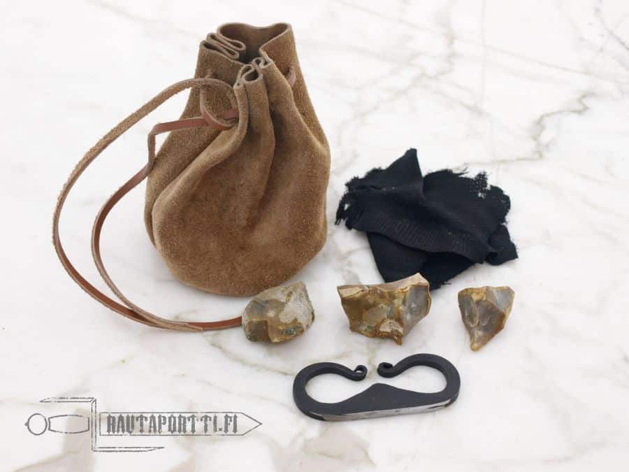 Karkku, piikivi ja aloitusmäärä lunttua on pakattu kätevään mokkanahkaiseen tuluskukkaroon, joka on helppo ottaa mukaan seuraavalle perinteiselle metsäretkelle tai menneiden aikojen elävöitysleirille. Täydellinen aloituspakkaus perinteisten bushcraft-taitojen opetteluun.