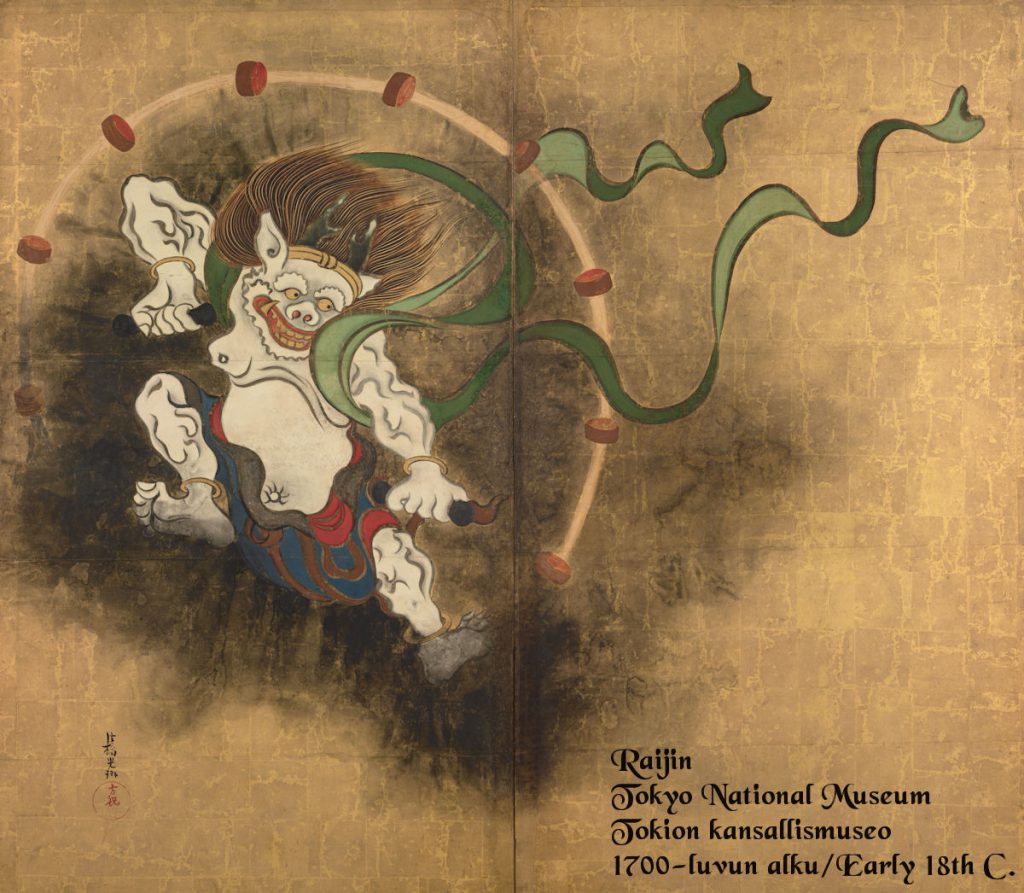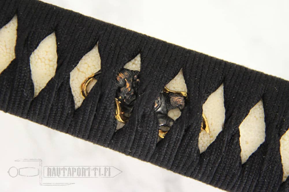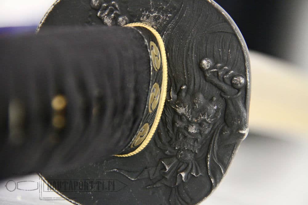 Tuuli ja Ukkonen -katanan Tsuba on valmistettu mustatusta ruostumattomasta teräksestä ja siinä on kuvattuna Raiden/Raijin, japanilaisen mytologian ja shintolaisuuden ukkosen jumala. Demonin näköinen henki luo ukkosta ja salamoita lyömällä rumpujaan vasaroilla, aiheuttaen sekä tuhoa ja kaaosta, mutta myös elintärkeää sadetta. Kuten muutkin jumalat japanilaisessa jumalperheessä, Raiden ei ole yksiselitteisen hyvä tai paha, vaan tutkimaton, kuten jumalat tapaavat mystisesti olla. Historiallisesti Japani on kärsinyt usein maantieteellisestä sijainnistaan, tsunamien ja taifuunien aiheuttaessa mittaamatonta tuhoa. Nämä tuhot on usein laskettu Raidenin ja Fuijinin, tuulen jumalan, teoiksi. Nämä tuulen ja ukkosen jumalat ovat toki suojelleet ja pelastaneetkin Japanin, ikimuistoisimmin vuosina 1274 ja 1281 kun he nostattivat jumalaisen tuulen, kamikazen, ja upottivat hyökkäävien mongolien laivaston kahdella eri valloitusyrityksellä siten päättäen mongolikaanien vallan laajentumisen itään.