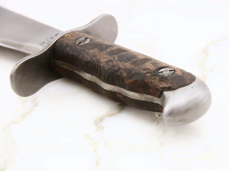 Myymämme malli on jäljennös vuoden 1917 bolo-veitsestä, joita valmistettiin valtaisat määrät vuosina 1917 ja 1918. Kärjestään kaksiteräinen terä on taottu korkealaatuisesta hiiliteräksestä. Tässä Yhdysvaltain armeijan sota-ajan mallin 1917 CT:ssä oli tuotannon nopeuttamiseksi ja yksinkertaistamiseksi täyspitkä ruoti. Tiheäsyisestä puusta valmistettu tumma kahva on kiinnitetty kahdella suurella pultilla. Terän oikealla puolella on alkuperäisen lailla leima ”US MOD 1917 CT”, eli Yhdysvaltain armeijan malli vuodelta 1917, kaupallista laatua. Vasemmalla on valmistustehdasta, -kaupunkia ja -vuotta ilmaiseva leima”PLUMB STLOUIS 1918”. Bolo-veitsen mukana toimitetaan paksusta telttakankaasta valmistettu tuppi, jonka nahkakärjessä on alkuperäisen valmistajan leima ja tupen suulla messinkinen vahviste ja vyökiinnike.