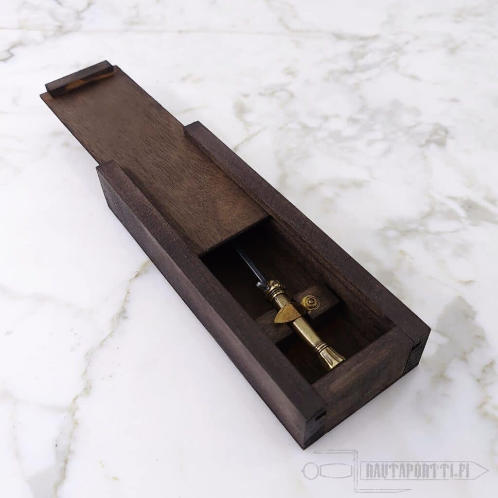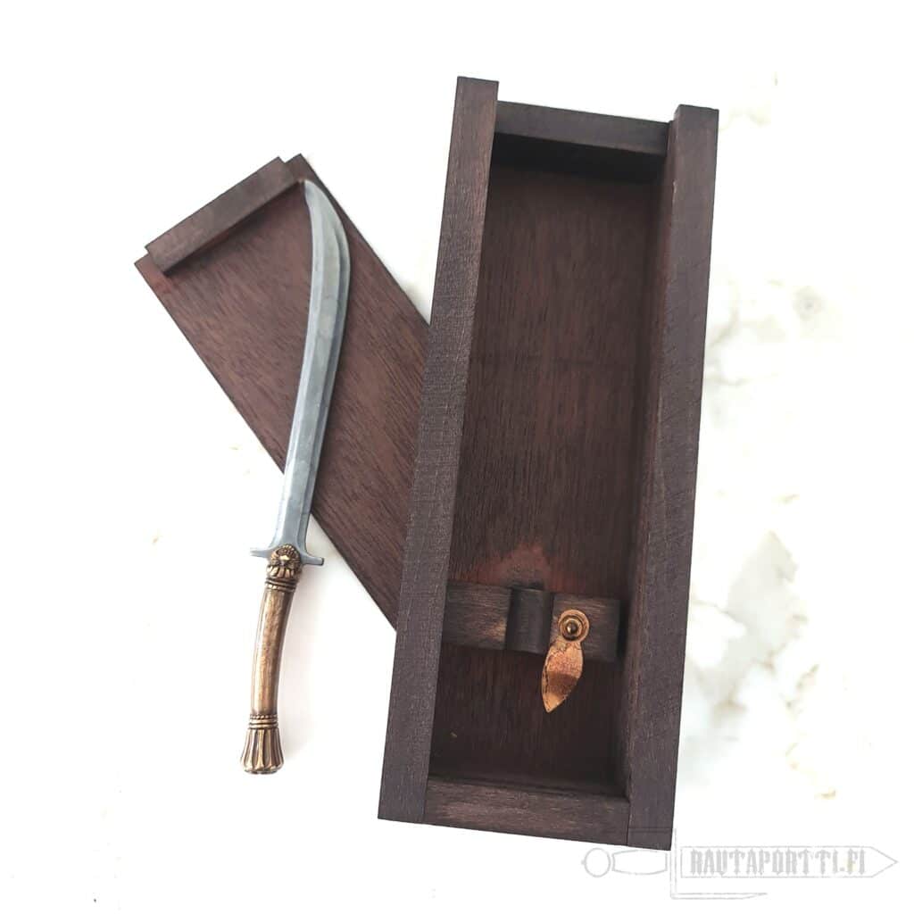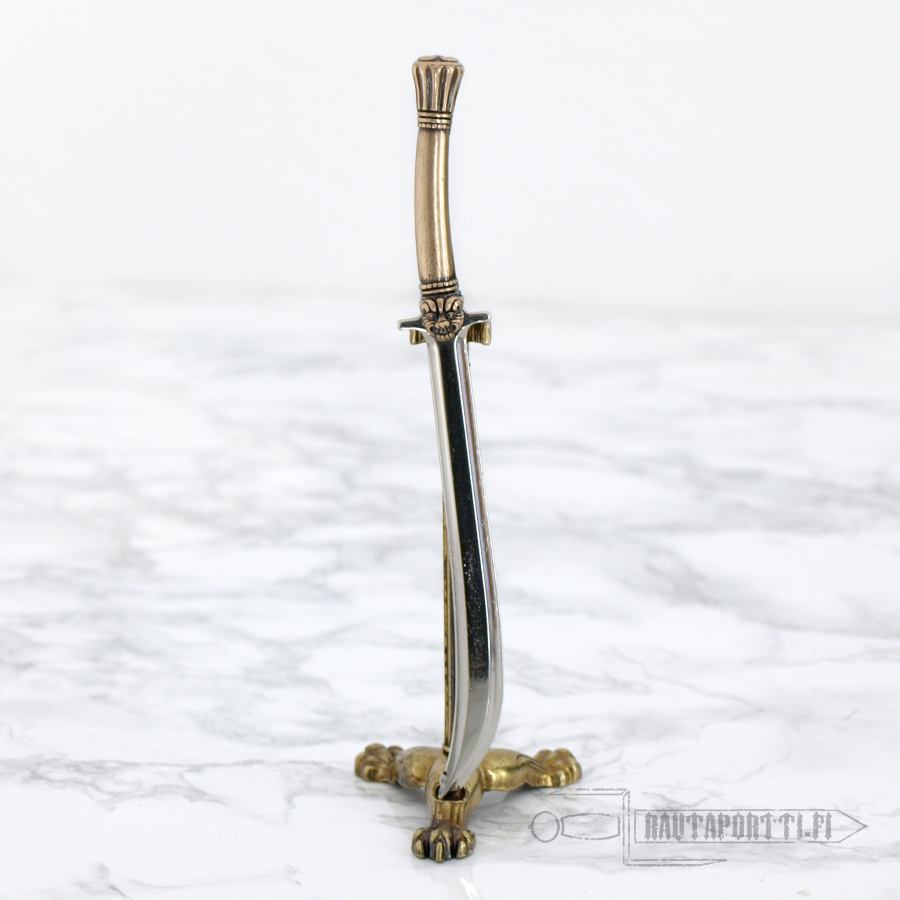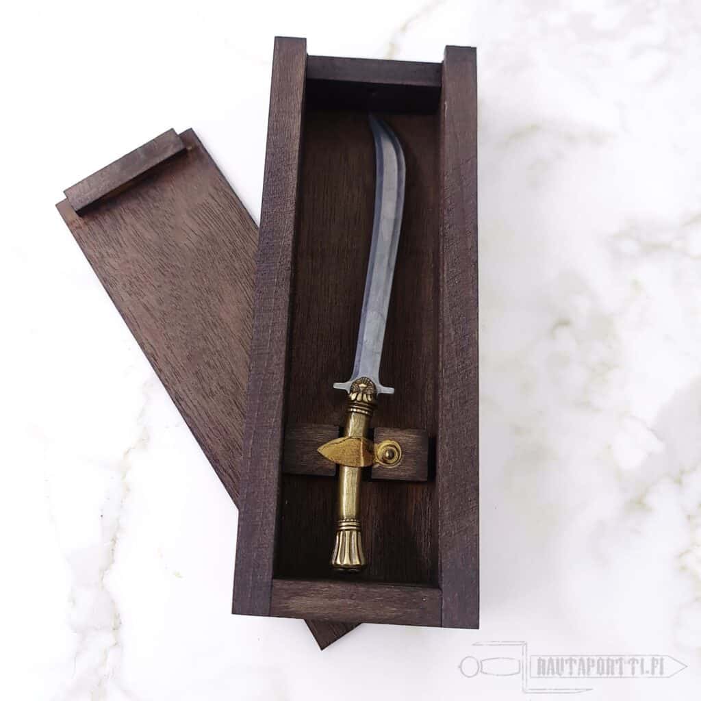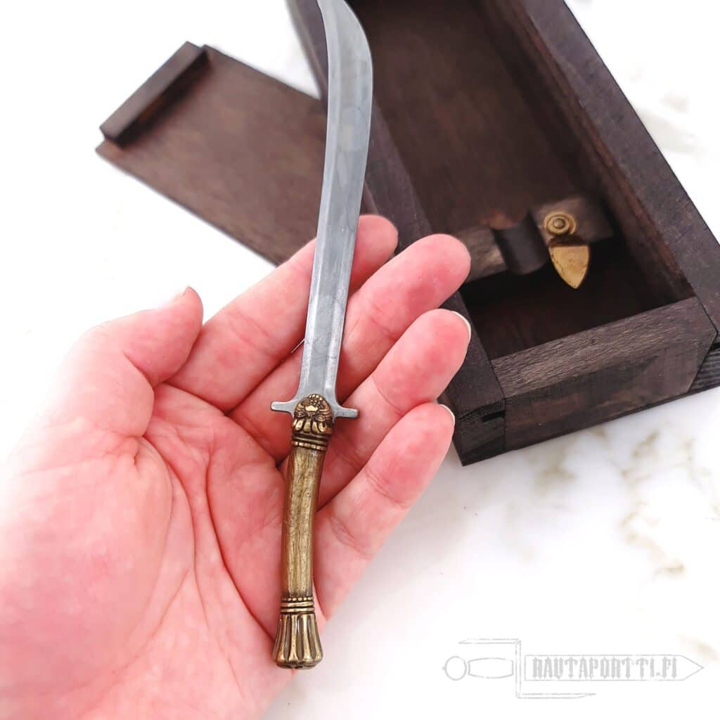 Kokonaispituus 16 cm Pienoismallimiekkaa voi käyttää kirjeenavaajana Mukana toimitetaan puinen säilytysrasia