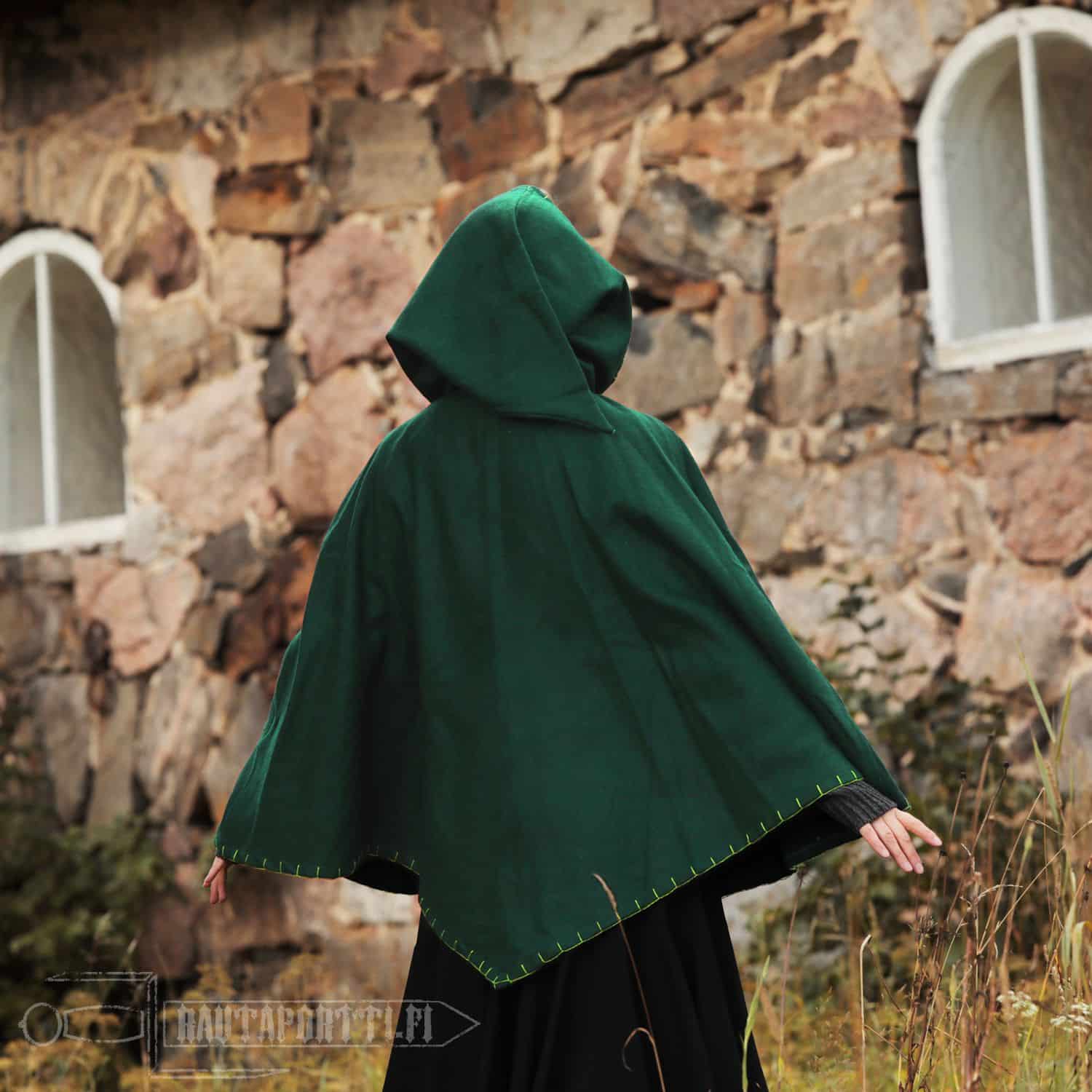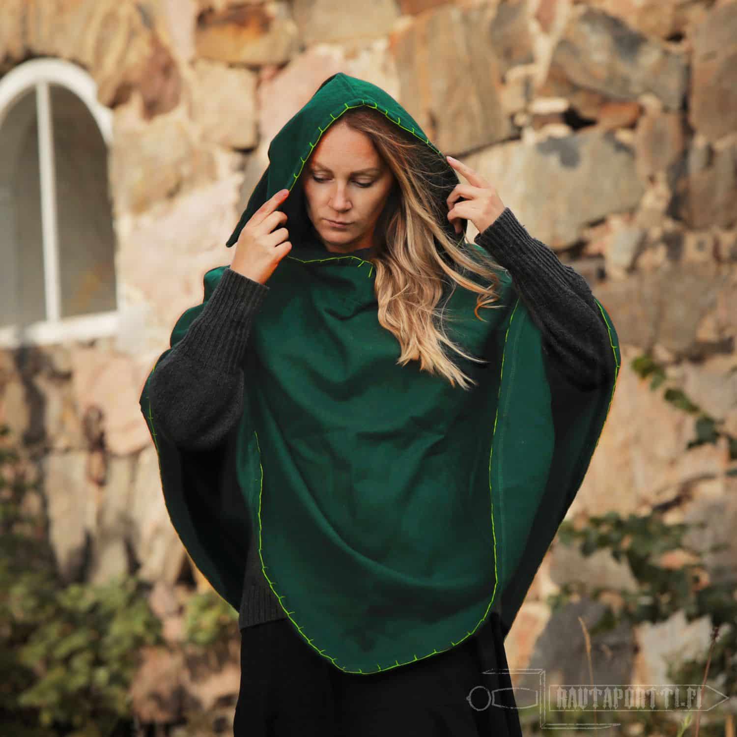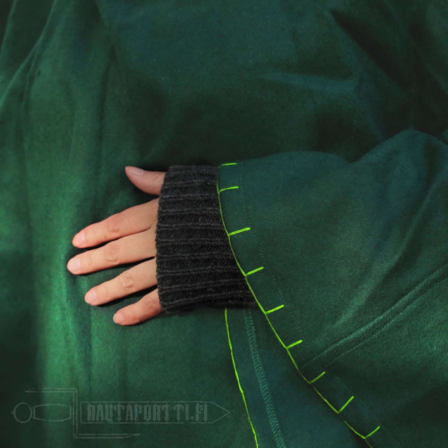 Todella kevyt, lämmin ja syksyn kovilta tuulilta suojaava vaate. Reunojen koristepistot purin pois ja vaihdoin toisenlaisiin koristeompeleisiin. Ostin tämän sekä viikinkileikkeihini, mutta ennenkaikkea arkipäivän helpoksi yläosaksi ulkona työskennellessä.