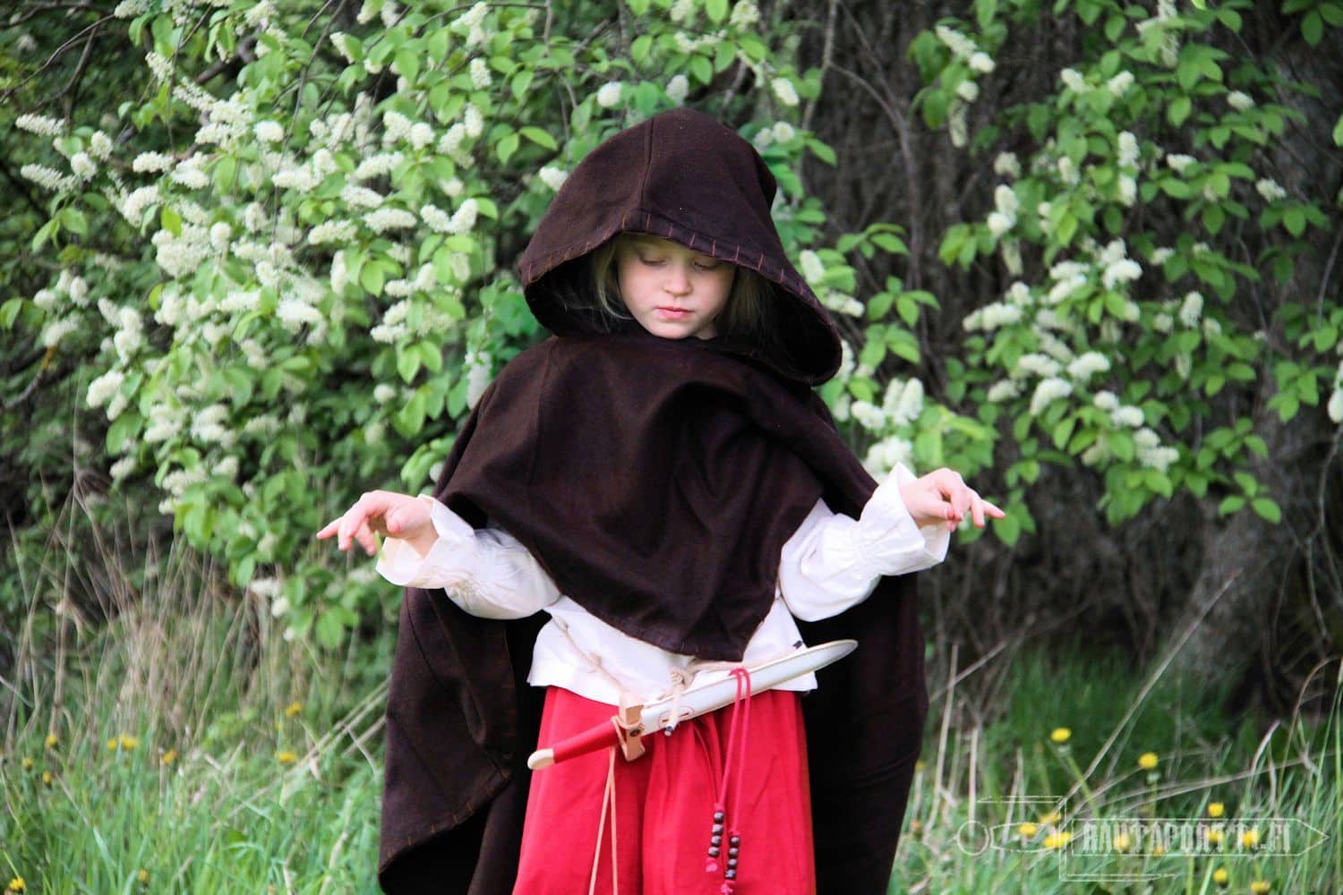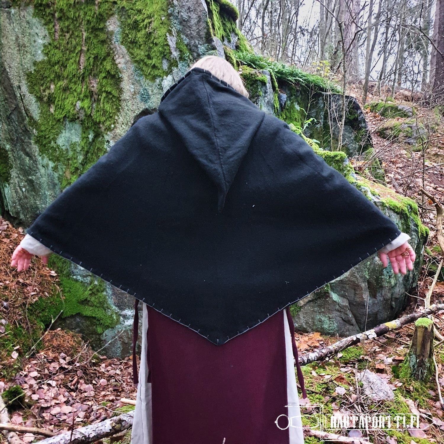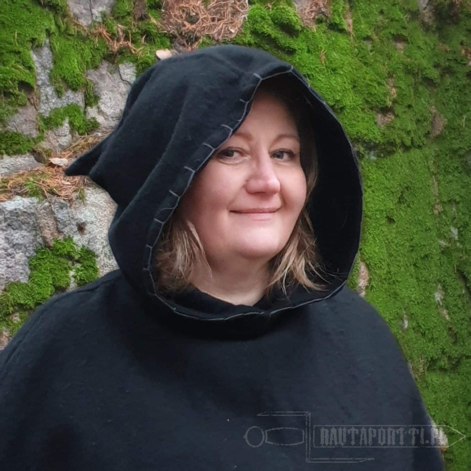 Todella kevyt, lämmin ja syksyn kovilta tuulilta suojaava vaate. Reunojen koristepistot purin pois ja vaihdoin toisenlaisiin koristeompeleisiin. Ostin tämän sekä viikinkileikkeihini, mutta ennenkaikkea arkipäivän helpoksi yläosaksi ulkona työskennellessä.