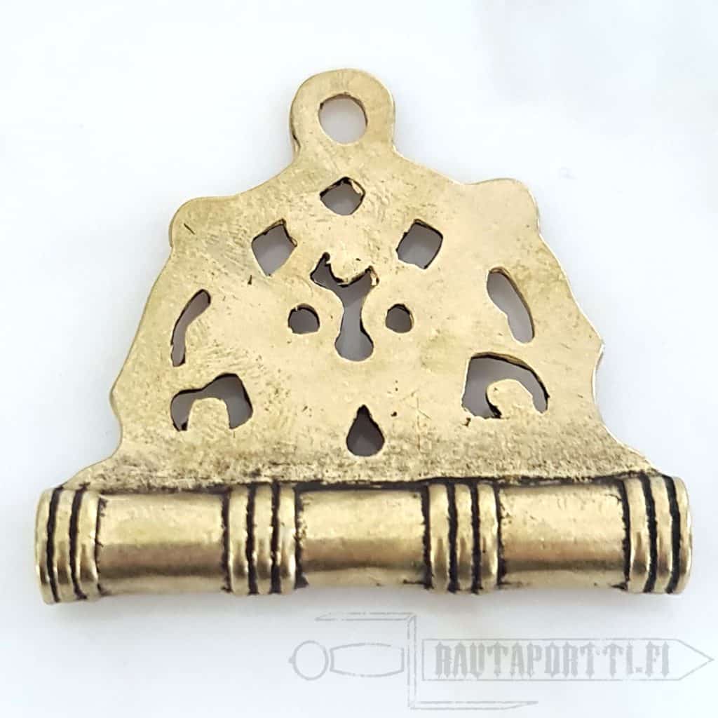 Viikinkiaikainen neulakotelo Itämeren ympäristöstä Jäljennös useamman viikinkiajan neulakotelolöydön perusteella Tehty pronssista Koko: 5.5 x 5 cm. Kotelon sisäosan halkaisija on 7 mm Sopii erinomaisesti historian elävöitykseen sekä LARP-käyttöön Neulakotelo on malliltaan molemmin puolin avonainen. Pala villaa sisällä pitää neulat paikoillaan