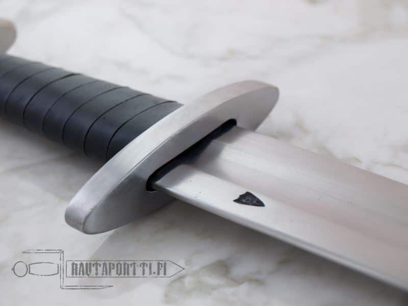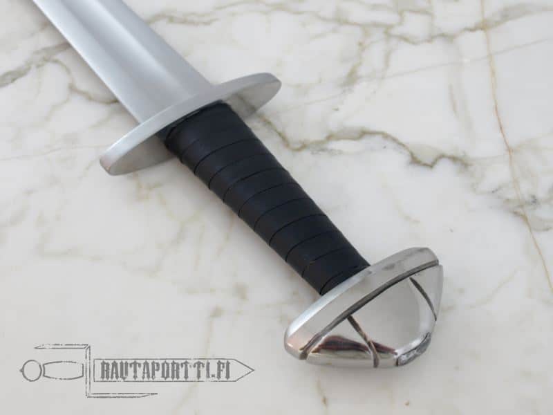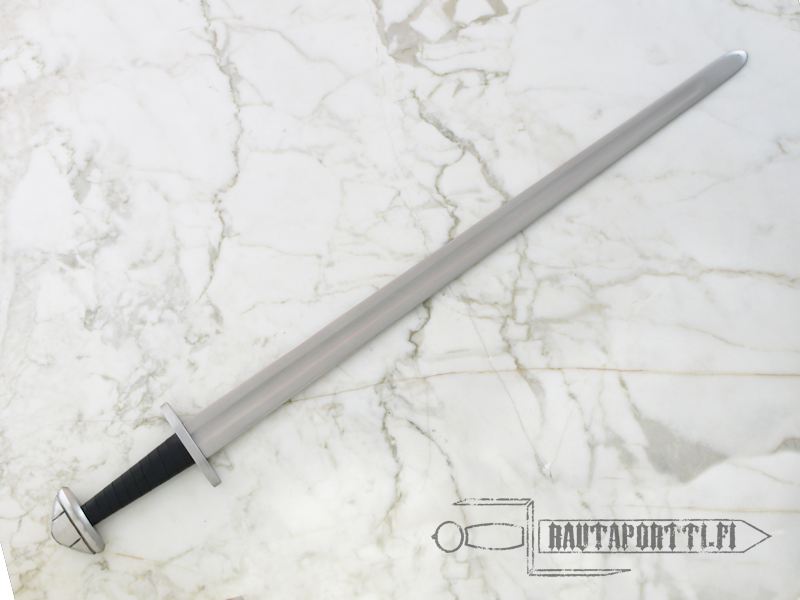 Valikoimassamme viimein teräksiset, pyöreäreunaiset ja raskasta käyttöä kestävät harjoitusmiekat. Nämä miekat on rakennettu kestämään taisteluiden rasituksia niin historianelävöittäjien taisteluissa kuin teattereiden näyttämöilläkin. Miekat on valmistettu 51CrV4 hiiliteräksestä ja lämpökäsitelty HRC 50-52 kovuuteen. Paksut reunat ja kärjet on pyöristetty nirhaumien ja kolhujen minimoimiseksi. Näiden harjoitusmiekkojen rakenne vastaa alkuperäisiä historiallisia kappaleita. Ponsi on niitattu kiinni ja vahva pyökkipuinen kahva on päällystetty nahalla. Väisti ja ponsi ovat terästä.