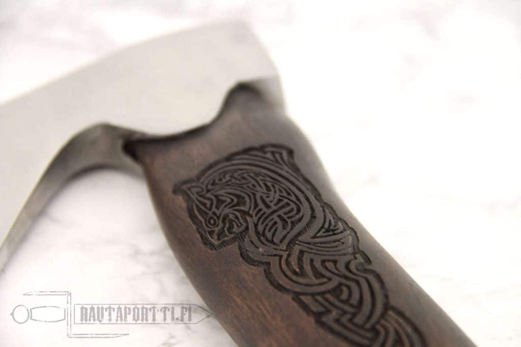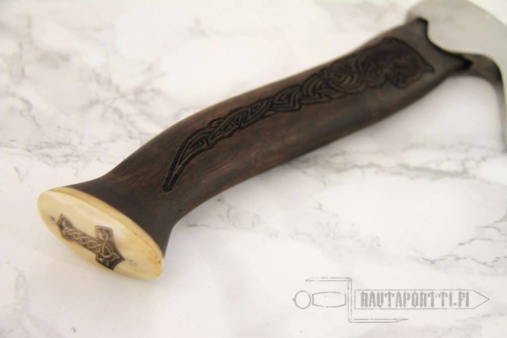 Pieni viikinkityylinen käsikirves sopii erinomaisesti retkikirveeksi historiaharrastajalle. Retkikirveellä onnistuvat pienet leiriaskareet, kuten halkojen pilkkominen ja lastujen vuoleminen nuotiota varten. Pienen kokonsa ja keveytensä ansiosta sen mukana pitäminen on vaivatonta. Kirveen jämäkkä terä on taottu korkealaatuisesta X46Cr13 ruostumattomasta teräksestä, joka on lämpökäsitelty 52 HRC kovuuteen. Miellyttävästi käteen sopivaksi muotoiltu kahva on tehty sissoopalisanterista, pohjoisintialaisesta kovapuusta. Kahvan molemmat puolet on koristeltu syvillä viikinkiaiheisilla kaiverruksilla. Kahvan pää on suojattu luisella koristeella, johon on kaiverrettu Thorin vasara, Mjölnir.