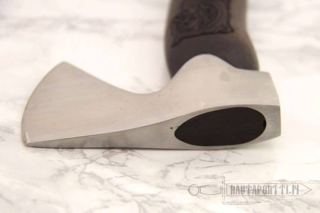 Kirves toimitetaan pahvilaatikossa, joka on vuorattu synteettisellä turkiksella.