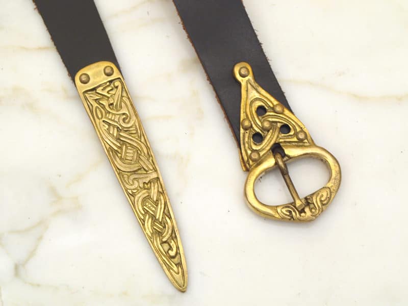 Autenttinen varhaiskeskiajan vyö messinkisellä soljella ja vyön päätykoristeella.