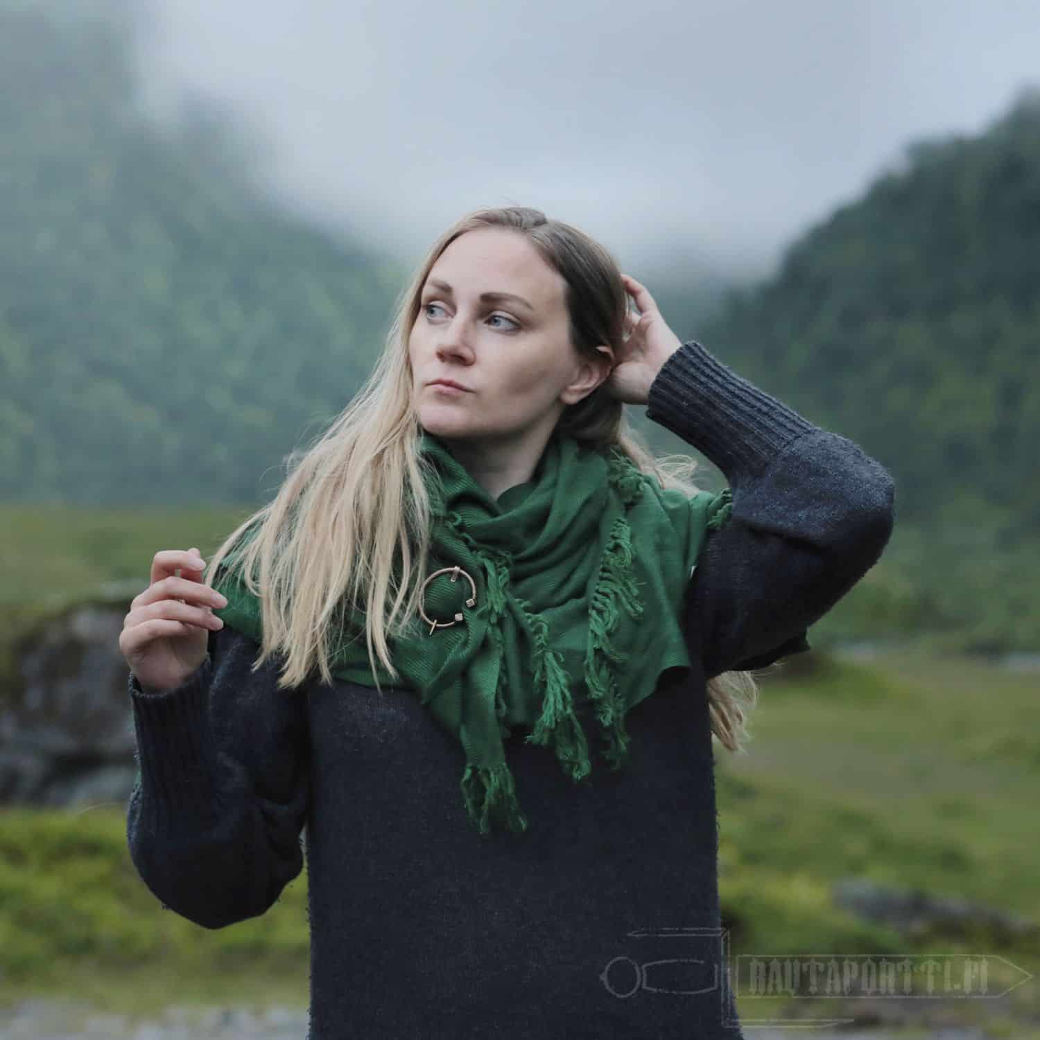 Viitat on tehty suomalaisten hautalöytöjen perusteella. Suomen rautakaudella naisten juhlavaatteiden reunoja oli usein koristeltu pronssispiraalein, ja pronssi on säilyttänyt maan alla kankaan osia ehjänä meidän päiviimme saakka. Näiden löytöjen ansiosta tämäkin viitta on osattu tehdä alkuperäisiä vastaavaksi. Sinäkin voit lisätä pronssispiraalikoristeita viittaasi, jos haluat hiukan koristeellisemman historiallisen viitan. Viitta on 100 % villaa ja siinä on käytetty samaa 2-2 toimikasta, jota viitoissa muinoin Suomessa käytettiin. Tämä sidostyyppi muodostaa kankaan pintaan ”viivoja”, joiden näkyvyyttä on näissä viitoissa vielä korostettu valitsemalla kuteeksi ja loimeksi kaksi hieman toisista poikkeavaa värisävyä.