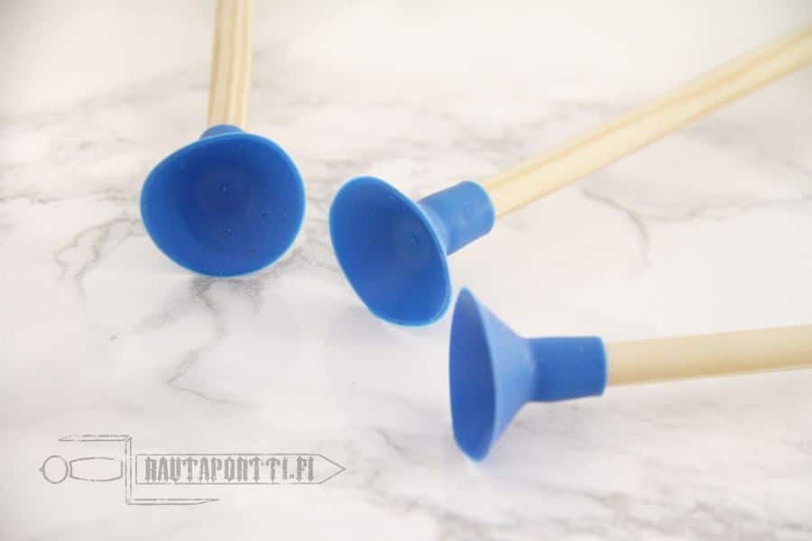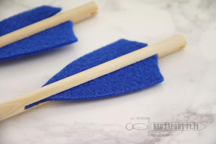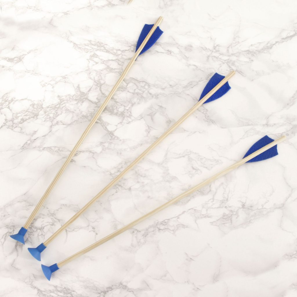 The arrows for the children’s bow have a blue suction cup , so that playing with the bow would be both fun and safe. They have blue felt “feathers” for stability. The arrows are sold in a pack of three.